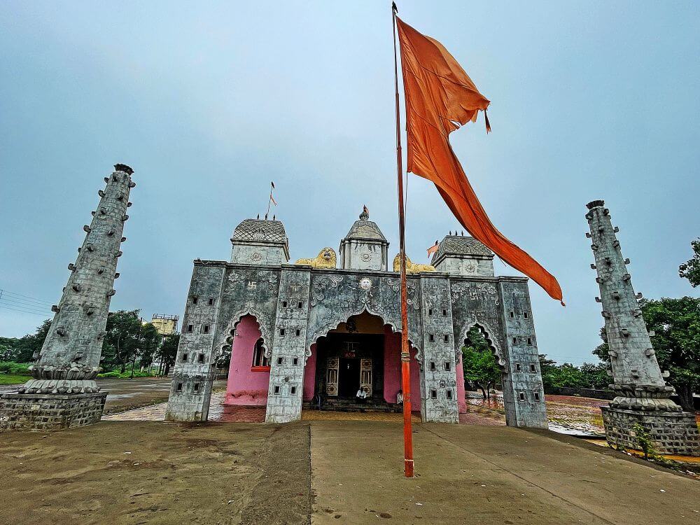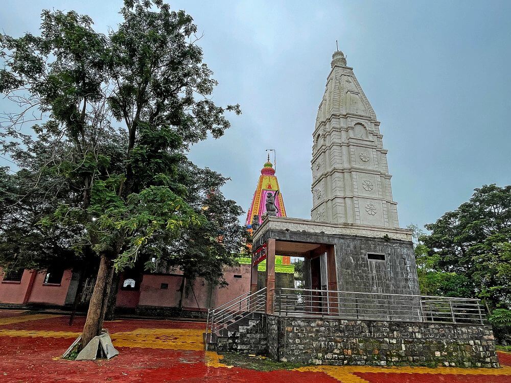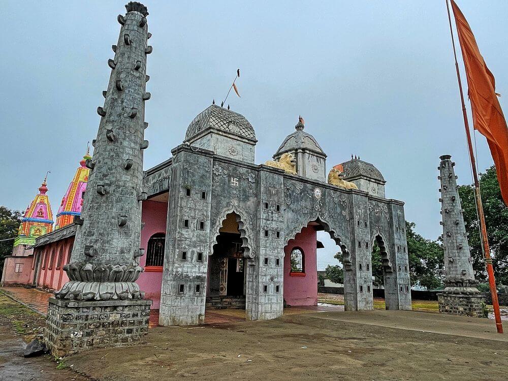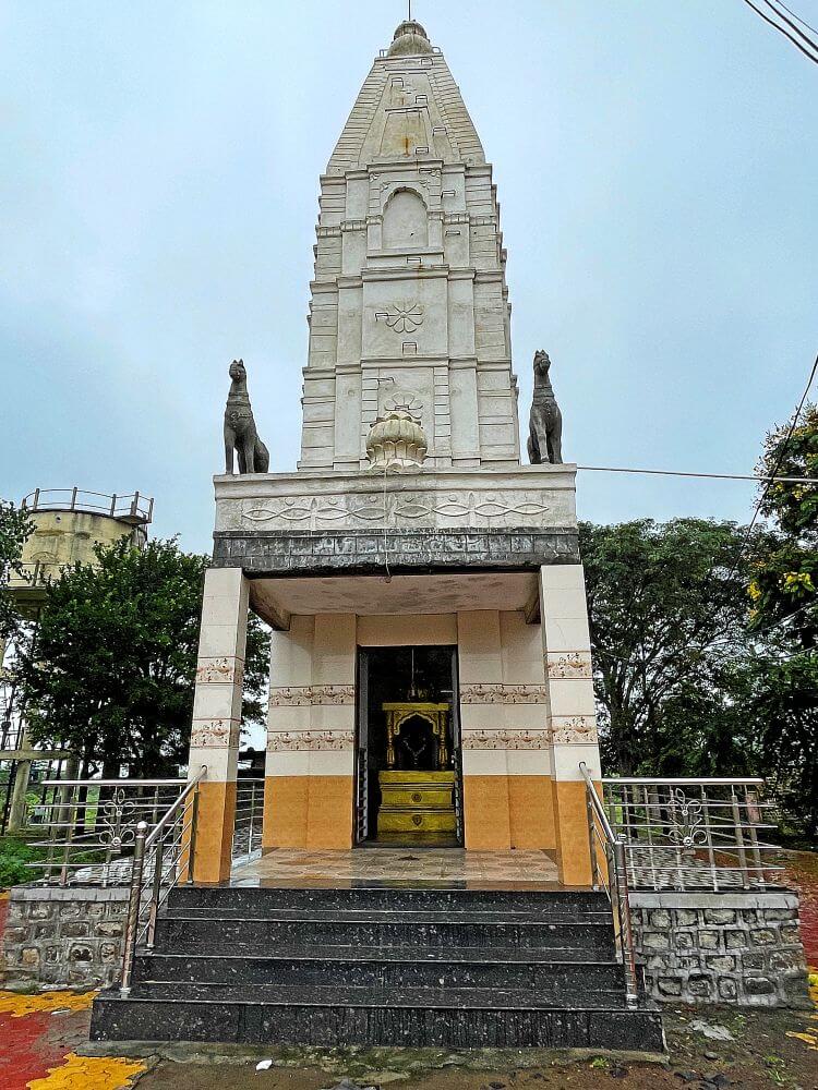 मंदिराच्या छतावर चहुबाजूंनी सुरक्षा कठडा व गर्भगृहाच्या छतावर दोन थरांचे चौकोनी शिखर आहे. शिखरात प्रत्येक थरात चारही बाजूंना देवकोष्टके, शीर्षभागी आमलक, त्यावर कळस व ध्वजपताका आहे. प्रांगणात देवी मंदिराच्या उजव्या बाजूला मारुती मंदिर व डाव्या बाजूला खंडोबा मंदिर आहे. दोन्ही मंदिरे दगडी बांधणीची आहेत.