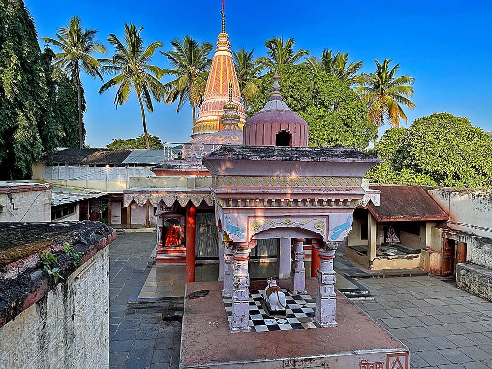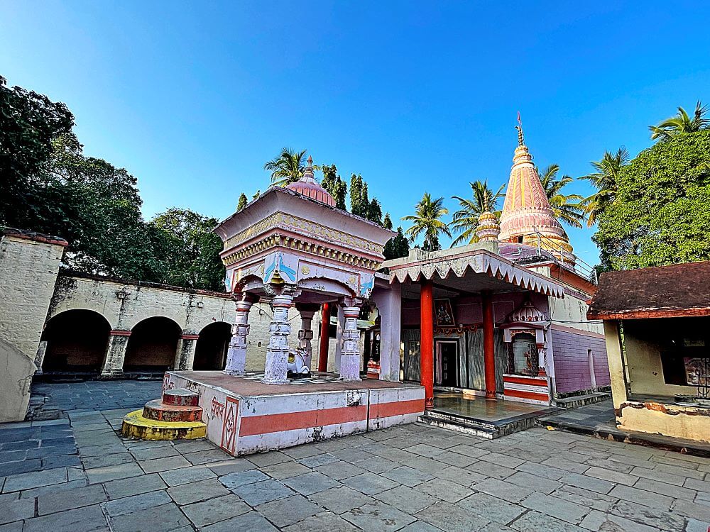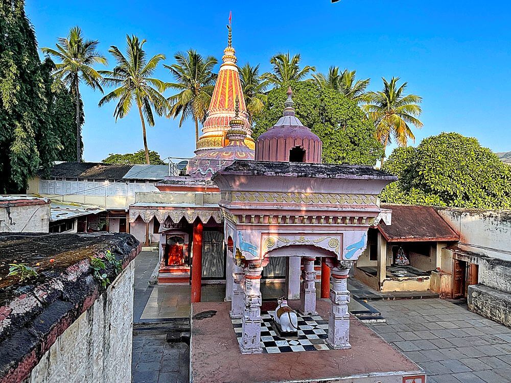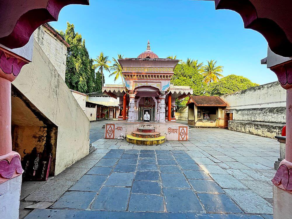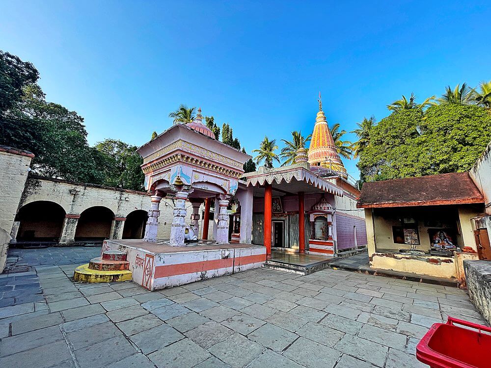 त्यांनी येथे येऊन अनेकदा पूजा-अर्चा केली होती. भाविकांसाठी त्यांनी येथे एक बारवही खोदली होती. शिवाय पूजा-अर्चेसाठी कवठ व बेलाची देवराई निर्माण करण्यासाठी त्यांनी कोटबेल या गावची जमीन मंदिरास इनाम दिली होती. अलीकडे १९९२ मध्ये या मंदिराचा जीर्णोद्धार झाल्यानंतर मंदिराला सध्याचे स्वरूप आले आहे.