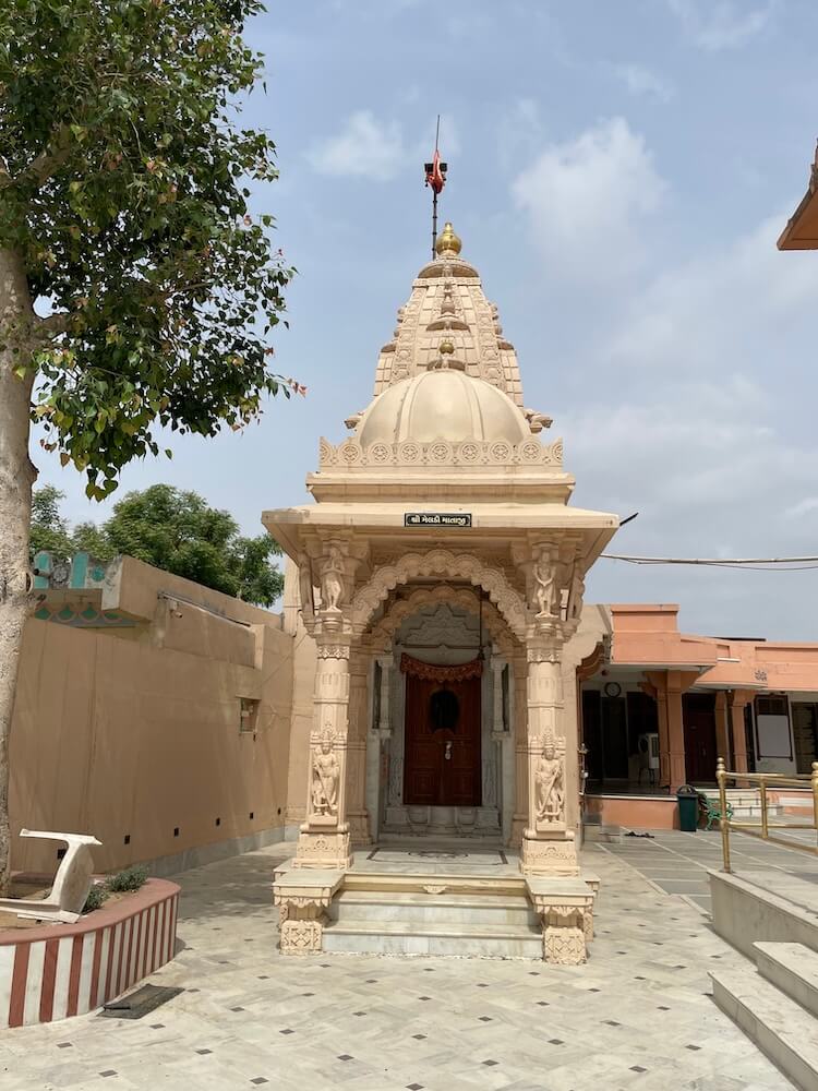 The temple courtyard also includes a yagyashala, along with separate shrines for Gargadia Hanuman and Meladi Mata. Nearby is a beautifully gilded temple dedicated to Varai Mata, its walls adorned with intricate golden designs.