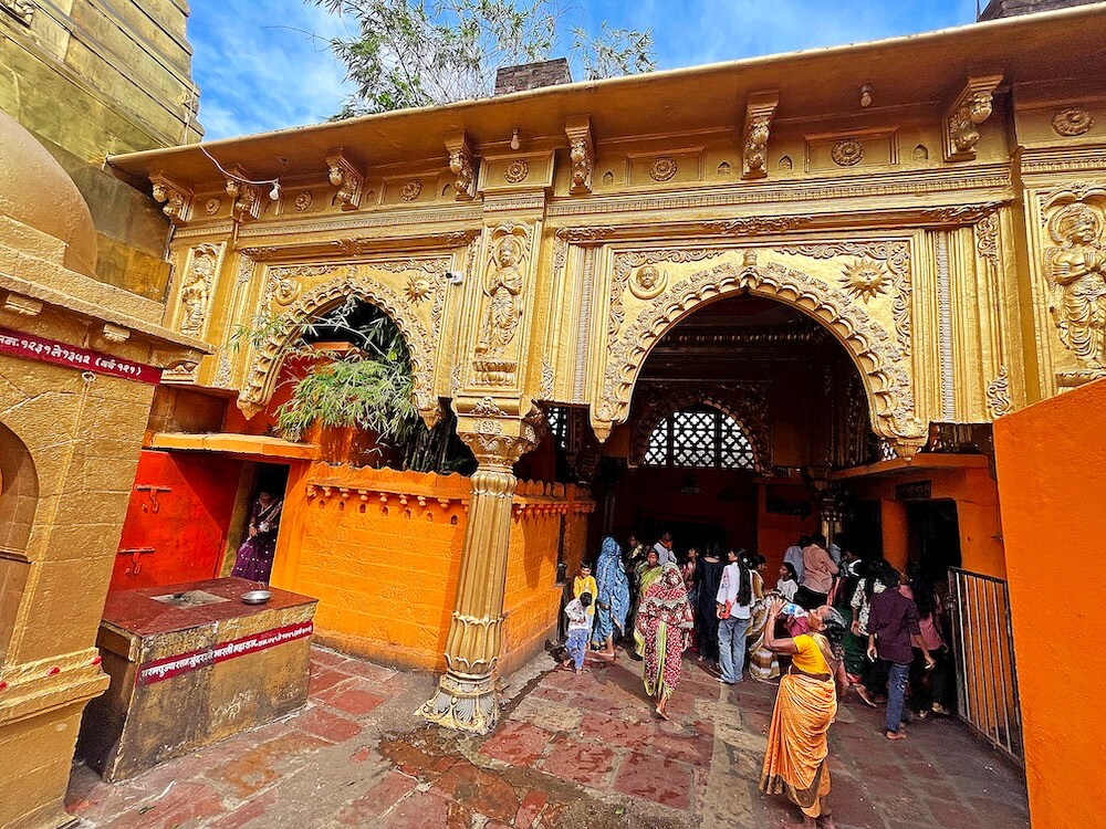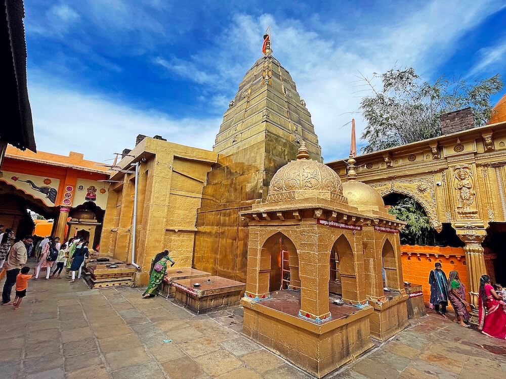 मुख्य मंदिराभोवती भक्कम तटबंदी आहे. तटबंदीतील दुमजली प्रवेशद्वारासमोर एकमेकांना महिरपी कमानीने जोडलेले सहा नक्षीदार स्तंभ असलेला मुखमंडप आहे. प्रवेशद्वाराच्या वरील मजल्यावर नगारखाना तर प्रवेशद्वारास लाकडी झडपा व दिंडी दरवाजा आहे. आतमध्ये दोन्ही बाजूला पहारेकरी कक्ष आहेत. तटबंदीच्या आत मंदिरासमोर डावीकडे अष्टकोनी दीपमाळ आणि बाजूला निळकंठेश्वर मंदिर आहे.