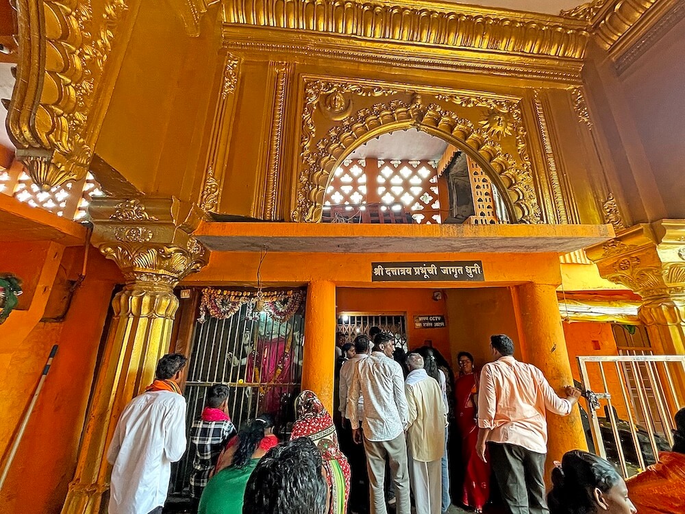 बाहेरचा सभामंडप अलीकडील काळात मुख्य सभामंडपाला जोडून बांधण्यात आला आहे. या अर्धखुल्या स्वरूपाच्या सभामंडपात डाव्या व उजव्या बाजूला प्रत्येकी चार नक्षीदार स्तंभ एकमेकांना महिरपी कमानीने जोडलेले आहेत. सभामंडपात मध्यभागी चार नक्षीदार गोलाकार स्तंभांची आणखी एक रांग आहे. बंदिस्त स्वरूपाच्या मुख्य सभामंडपात नक्षीदार स्तंभांवर अर्धचंद्राकार कमानी आणि प्रत्येक चार स्तंभांमधील वितान (छत) घुमटाकार आहे. स्तंभांच्या शीर्षभागी कणी आणि त्यावरील हस्तांवर नागशिल्पे आहेत. मुख्य सभामंडपात उजव्या बाजूला महंतांचे परंपरागत आसन आहे. येथील देवकोष्टकांत गणपतीसह इतर देवी-देवतांच्या मूर्ती आहेत. अंतराळाच्या प्रवेशद्वाराच्या उजव्या बाजूला पंचमुखी शिवपिंडी, तर डावीकडे ऋषी अत्रि, माता अनसूया, श्रीदत्तात्रेय व अनघादेवी यांच्या मूर्ती आहेत. मुख्य सभामंडपात अंतराळाच्या प्रवेशद्वारासमोर नंदी आहे. प्रवेशद्वाराच्या दोन्ही बाजूला दोन नक्षीदार स्तंभ व त्यावर तोरण आहे. अंतराळाचे व गर्भगृहाचे प्रवेशद्वार रजतपटल (चांदीने) आच्छादित आहे. त्यावर विविध प्रकारची नक्षी कोरलेली आहे. गर्भगृहाच्या द्वारशाखांवर पानाफुलांची नक्षी व ललाटबिंबावर गणपतीची मूर्ती आहे. उत्तरांगावर शिखरशिल्पांचे तोरण आहे. गर्भगृहातील पिंडीवर श्रीदत्तात्रेयांचा चांदीचा मुखवटा आहे. हे श्रीदत्तात्रेयांचे मुख्य स्थान असल्याचे सांगितले जाते. गर्भगृहाच्या छतावर पिरॅमिड आकाराचे आणि उतरत्या पायऱ्यांची रचना असलेले चौकोनी शिखर आहे. शिखरावर काही अस्पष्ट शिल्पे व उरूशृंगी शिखरे आहेत. मुख्य शिखराच्या शीर्षभागी स्तूपिका व कळस आहे.