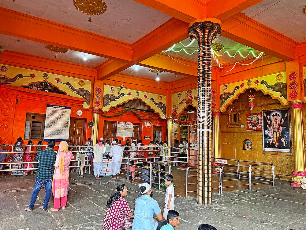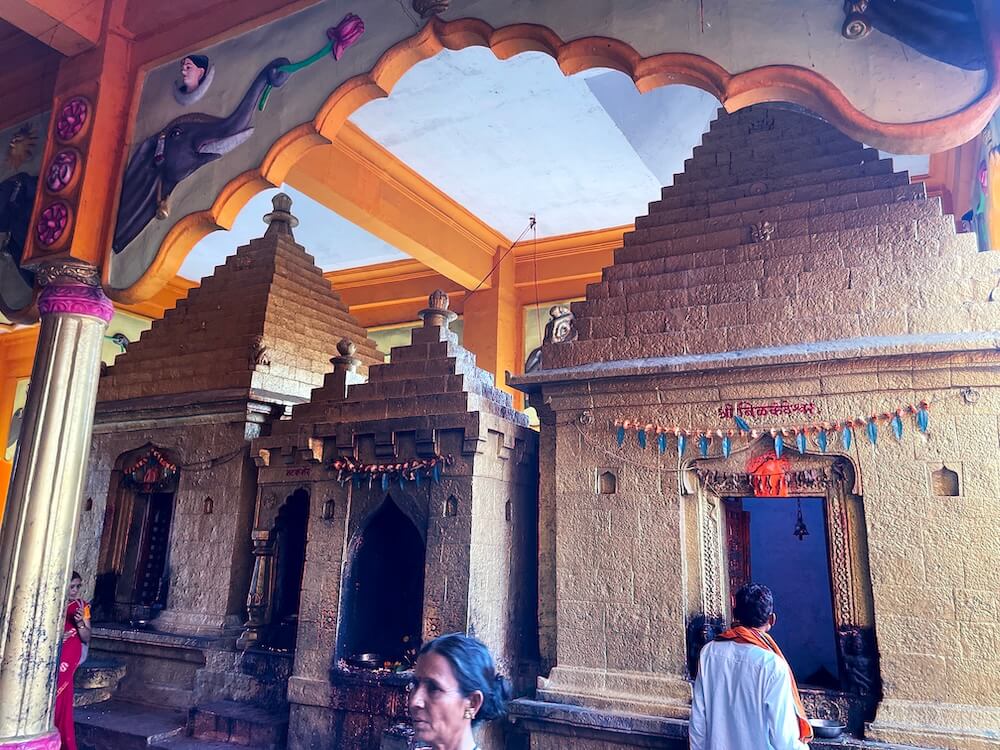 या मंदिरात मध्यभागी जमिनीवर शिवपिंडी आहे. मंदिराच्या तिन्ही दिशेच्या भिंतीत असलेल्या देवकोष्टकांमध्ये गणेश, हनुमान व पार्वती यांच्या मूर्ती आहेत. निळकंठेश्वर मंदिराला लागून काळभैरव, भटकभैरव, हरिहरेश्वर इत्यादी मंदिरे आहेत. या सर्व मंदिरांच्या प्रवेशद्वारावर द्वारपाल शिल्पे कोरलेली आहेत. याच ठिकाणी त्रिमुखी दत्तात्रेयाचे मंदिर, अखंड धुनी, काही नंदी मूर्ती व शिवपिंडी देखील आहेत. येथेच प्रथम महंत सिद्धजी भारती महाराज यांची समाधी आहे. समाधीवर त्यांचे आयुष्यमान सन ७५९ ते १२५९ असे पाचशे वर्षांचे असल्याचे लिहिलेले आहे. येथील धुनीबाबत अशी आख्यायिका आहे की त्रेतायुगात पिंगलनाग नावाच्या ऋषींनी येथे तपश्चर्या करून दत्तदर्शन प्राप्त करून घेतले होते. त्यावेळी पेटविलेली ही धुनी अद्याप तेवत आहे. समाधीच्या बाजूला एक वृक्ष आहे. हा वृक्ष म्हणजे सिद्धजी महाराजांची काठी असल्याचे सांगितले जाते. महाराजांनी शुष्क काठी जमिनीत रोवल्यानंतर त्यातून हा वृक्ष बहरला अशी धारणा आहे. त्यापुढे इतर महंतांच्या समाधी आहेत.