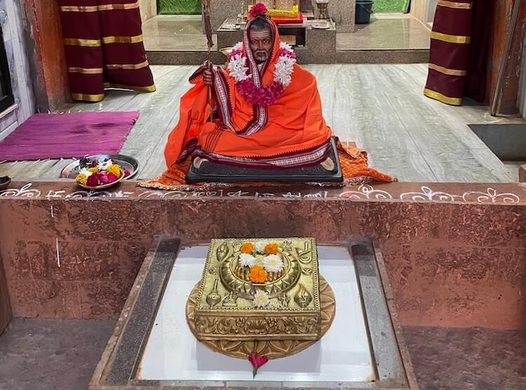 Among the few sacred shrines of Dattatreya on the Narmada parikrama-route, the renowned pilgrimage centre at Bhalod holds a distinguished place. Situated upon the banks of the Narmada, this temple enshrines an ancient 12th-century idol of Ek-mukhi (single-faced) Dattatreya. Carved from a monolithic shaligram (sacred black stone), the idol’s unique iconography reveals a gomukha (cow’s mouth) upon its chest. This sacred image was discovered in the depths of the Narmada river by a couple during their pilgrimage. A notable chapter of its history is that after residing in Vadodara for many years, the deity returned to its permanent abode on the riverbank after a span of 165 years. Today, it draws hundreds of parikramavasis (circumambulating pilgrims) and devotees of the Datta sampradaya (sect) alike.