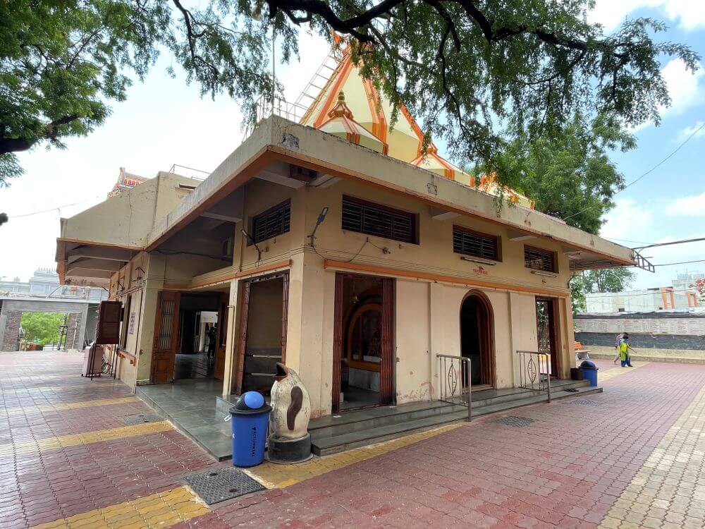 प्रवेशद्वाराच्या आत दोन्ही बाजूस भिंतीत पहारेकरी कक्ष आहेत. येथून मंदिराच्या पेव्हर ब्लॉक लावलेल्या प्रांगणात प्रवेश होतो. सभामंडप व गर्भगृह अशी मंदिराची संरचना आहे. सभामंडपाचे छत दोन्ही बाजूस उताराचे आहे, तर गर्भगृहाच्या छतावर सुमारे तीस फूट उंच षट्कोनी शिखर आहे.