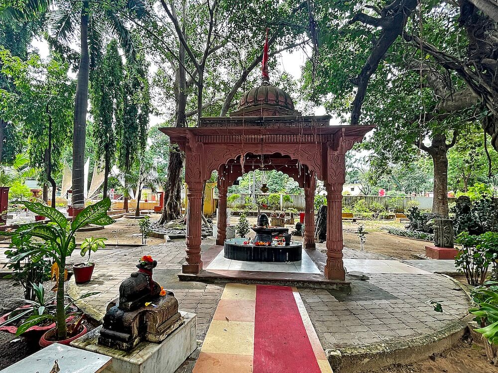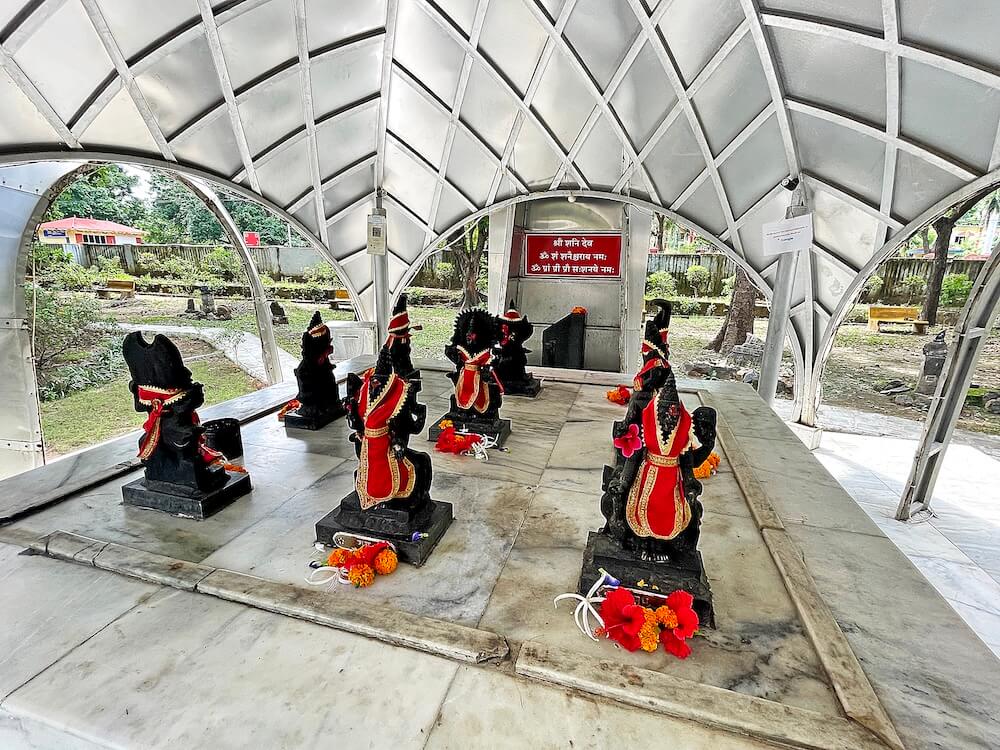 Surrounding the main temple are smaller shrines dedicated to Siddhivinayak, Radha-Krishna, Durga Mata, Sai Baba, Shri Ram-Sita-Lakshman and Hanuman, as well as a serene statue of Gautam Buddha. A mini Amarnath cave replica houses a Shiva linga made of ice and a meditative Shiva statue on Mount Kailash. The temple complex also features a Navagraha temple. Initially, the nine planetary deities were placed under a tree in an open space. After assuming charge as the 32nd Commandant of EME School on November 3, 2022, Major General Neeraj Vashistha noticed their exposed state and initiated the construction of a new temple to house them.