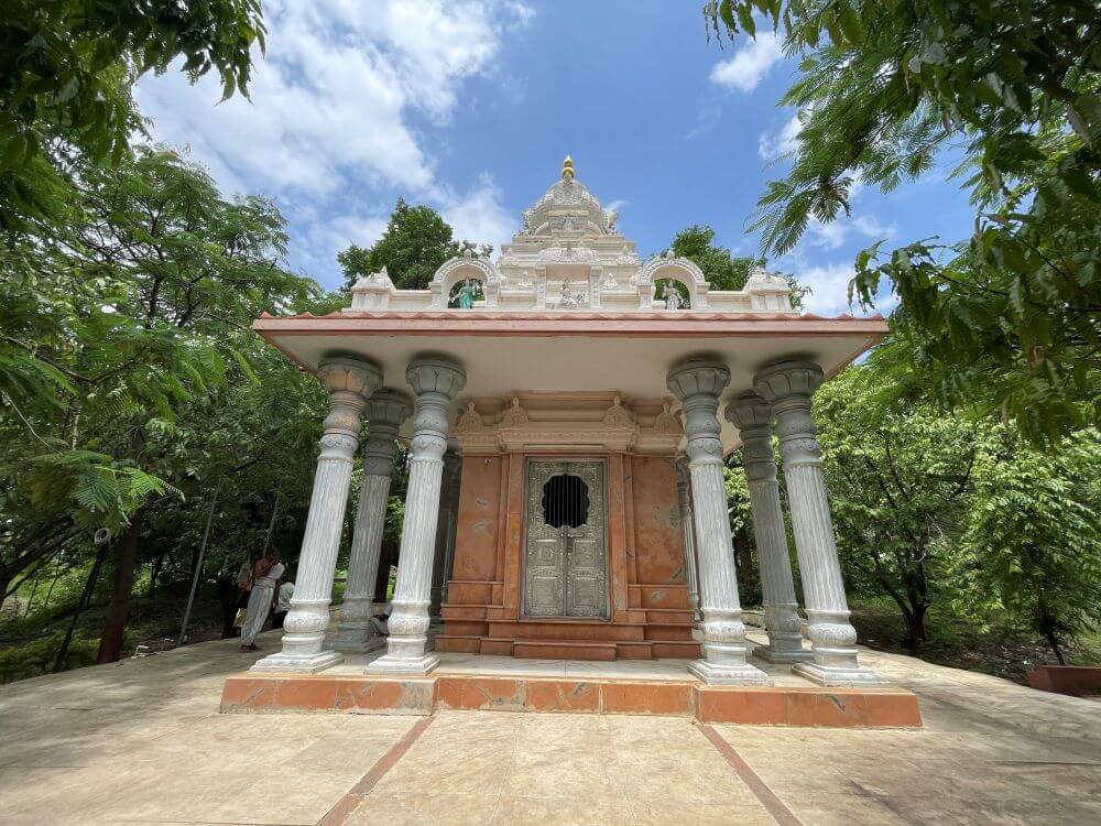 मंदिराच्या प्रांगणात असलेले अनेक चौथरे व मंडपांमध्ये विविध प्रकाराची शिल्पे आहेत. प्रांगणात जागोजागी असलेल्या अर्धभिंतींवर संस्कृत श्लोक, सुभाषिते व त्यांचे अर्थ लिहिलेले आहेत. प्रांगणात अग्निहोत्र प्रतिकृती शिल्प आहे. मठात अग्निहोत्र यज्ञमंडप आहे. येथे एकावेळी शेकडो भाविक अग्निहोत्र करतात. मठात भाविकांना राहण्यासाठी भक्तनिवास व अन्नछत्र सभागृह आहे. मठात गोशाळा, सेंद्रिय शेती, प्रदूषणमुक्त शाश्वत निसर्ग इत्यादी उपक्रम राबविले जातात.