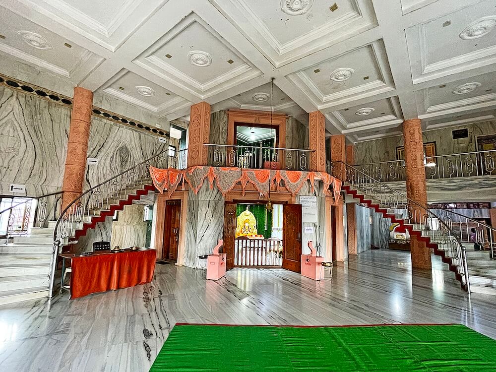 दुसऱ्या मजल्यावरील मंदिरात जाण्यासाठी सुमारे २५ पायऱ्यांचे दोन मार्ग आहेत. मंदिराच्या दर्शनी भागातील सज्जामध्ये कलाकुसर केलेले स्तंभ आहेत. त्यापुढे सभामंडप व गर्भगृह आहे. प्रशस्त सभामंडपात मध्यभागी असलेल्या येथील गर्भगृहात उंच वज्रपिठावर गजानन महाराजांची शुभ्र संगमरवरी बैठी मूर्ती आहे. या मूर्तीच्या मागील सोनेरी नक्षीदार प्रभावळीवर मयूर व सूर्य नक्षी कोरलेल्या आहेत. महाराजांच्या मूर्तीसमोर काचेच्या पेटीत गजानन महाराजांनी पुंडलिक भोकरे यांना दिलेल्या पादुका ठेवण्यात आलेल्या आहेत. या गर्भगृहाच्या दोन्ही बाजूने तिसऱ्या मजल्यावर जाण्यासाठी सुमारे २० पायऱ्या असलेले दोन मार्ग आहेत. या पायऱ्या चढून तिसऱ्या मजल्यावर प्रवेश होतो. या मजल्यावरील गर्भगृहात श्रीराम, सीता, लक्ष्मण व हनुमान यांच्या मूर्ती आहेत. या मजल्यावरील पारायण सभागृहात गजानन महाराजांचा जुना पलंग तसेच गजानन महाराजांची प्रतिमा आहे. प्रांगणात मंदिरानजीकच ‘अमृततीर्थ’ म्हणून ओळखली जाणारी प्राचीन विहीर आहे. तिला लागून पूर्व दिशेला गजानन महाराजांची धुनी आहे. असे सांगितले जाते की १९०८ मध्ये गजानन महाराज झामसिंग यांच्या वाड्यात आले होते तेव्हा त्यांनी येथे ही धुनी पेटवली होती. मंदिरासमोर झामसिंग सदन आहे. दररोज शेकडो भाविक तसेच पर्यटक या मंदिराला भेट देतात. दर गुरुवारी येथे भाविकांना महाप्रसाद देण्यात येतो. एकादशीला फराळाचे वाटप करण्यात येते. येथे रामनवमी, आषाढी एकादशी, गुरुपौर्णिमा, गोकुळाष्टमी, गजानन महाराज प्रगट दिन, समाधी सोहळा (ऋषीपंचमी) आदी उत्सव होतात. पौष पोर्णिमेला येथे यात्रा महोत्सव होतो. संस्थानाच्या विश्वस्त मंडळातर्फे परिसरात अनेक सामाजिक उपक्रमही राबवण्यात येतात. दररोज सकाळी ५ वाजल्यापासून रात्री १० वाजेपर्यंत भाविकांना या मंदिरात दर्शन घेता येते.