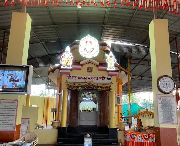 शेगावप्रमाणेच आपल्या गावातही गजानन महाराजांचे मंदिर असावे, या भावनेतून येथील ग्रामस्थांनी लोकवर्गणीतून २०१९ मध्ये हे मंदिर बांधले. अल्पावधीतच प्रसिद्ध झालेले हे मंदिर व शेगाव येथील गजानन महाराजांचे मूळ मंदिर यांच्यात साधर्म्य असलेल्या अनेक गोष्टी आहेत. शेगावच्या मंदिराप्रमाणेच अष्टकोनी असलेले हे मंदिर एका शेतजमिनीत उभारले आहे आणि शेगावमधील मंदिराप्रमाणेच या जमिनीचा गट क्रमांक ४१ आहे. शेगावप्रमाणेच या मंदिरासमोर तीन रस्ते आहेत आणि मंदिरासमोरील जागेचा आकार चोळीच्या खणासारखा आहे.