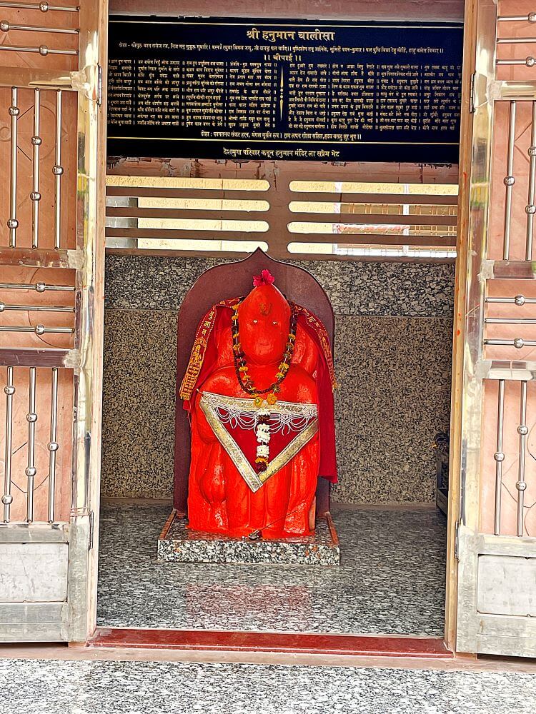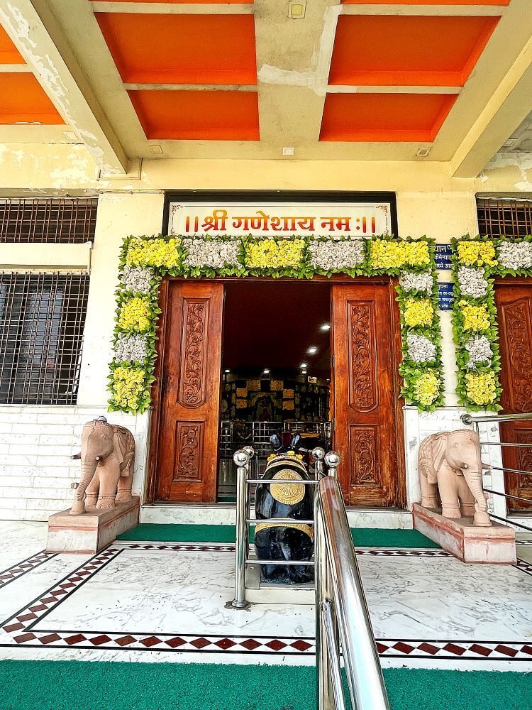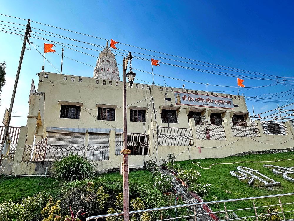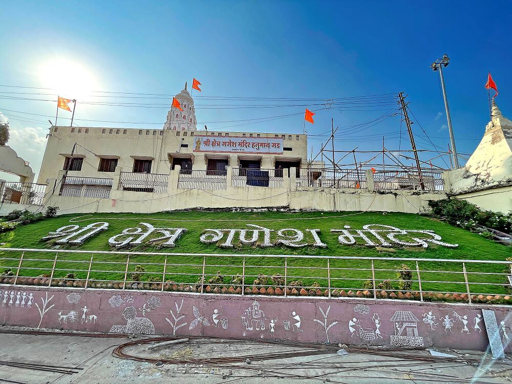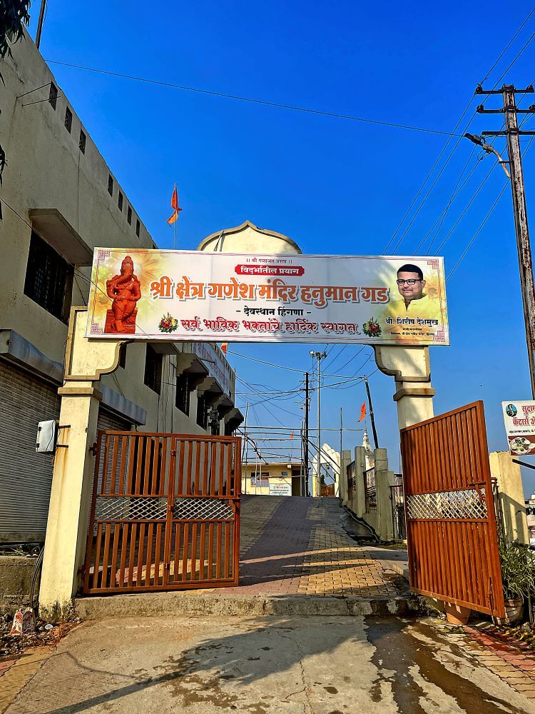 हनुमान गढ़ पर स्थित गणेश मंदिर में जाने के लिए मेहराबदार प्रवेशद्वार है। नदी के तट से कुछ ऊँचाई पर स्थित इस मंदिर परिसर से दोनों नदियों के संगम का विहंगम दृश्य दृष्टिगोचर होता है। वेणा नदी पश्चिम से पूर्व की ओर बहती है। जबकि दुर्गा नदी दक्षिण से आकर उससे मिलती है। इस नदी के समीप मंदिर समिति द्वारा मनोहर उद्यान बनाया गया है। गणेश मंदिर दो मंजिला है और इसमें दर्शनमंडप, सभामंडप और गर्भगृह शामिल हैं। सभामंडप में श्यामवर्णी पाषाण मूर्ति के रूप में मूषकराज विराजमान हैं। उनके सामने गर्भगृह में ऊँचे चबूतरे पर सिंदूर चढ़ी गणेश पाषाण मूर्ति है। यह मूर्ति ४.५ फुट ऊँची और २ फुट चौड़ी श्यामवर्णी पाषाण से बनी है। २६ फरवरी १९९१ को किए गए नूतनीकरण के बाद मंदिर को वर्तमान स्वरूप प्राप्त हुआ। उसी समय हिंगणा के भेंडी परिवार द्वारा संरक्षित मूल पाषाण मूर्ति की पुनःप्रतिष्ठा की गई। मंदिर में अनेक देवी-देवताओं की पाषाण मूर्तियाँ और स्वामी की समाधियाँ भी हैं।