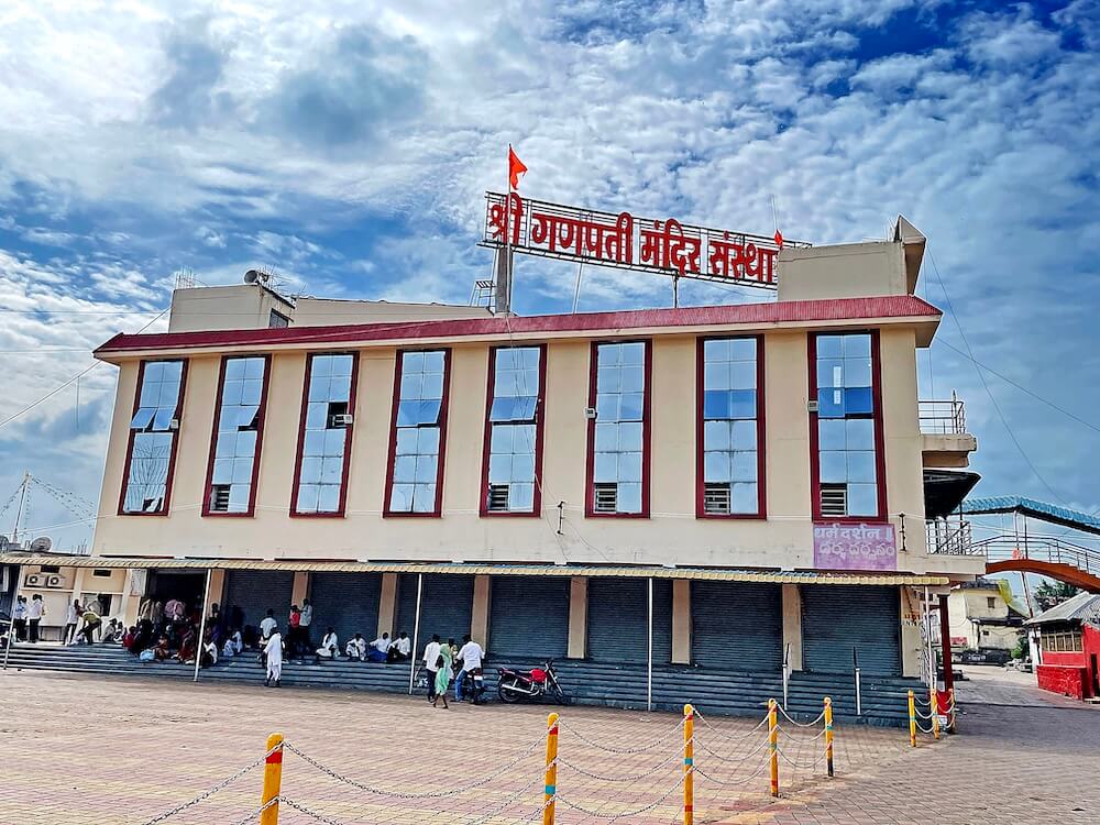 गावापासून काही अंतरावर मोकळ्या मैदानात हे मंदिर असून मंदिराच्या आसपास मंगल कार्यालय, अन्नछत्र, स्वयंपाकघर, सेवेकरी व पुजाऱ्यांची निवासस्थाने व देवस्थानचे कार्यालय आहे. गणेशोत्सव काळात या मैदानात दहा दिवसांचा जत्रोत्सव साजरा केला जातो व दहा दिवस बाजार भरतो. इतर वेळेस या मैदानाचा वापर वाहनतळ म्हणून केला जातो. मंदिराच्या पेव्हर ब्लॉकने आच्छादित प्रांगणात लोखंडी स्तंभांवर पत्र्याचे गजपृष्ठाकृती छत असलेला रांगमंडप आहे.