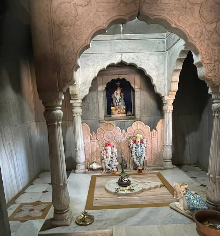 मंदिराच्या प्रवेशद्वाराच्या डाव्या बाजूला असलेल्या दालनात गजानन महाराजांचा तो ऐतिहासिक पलंग आणि त्यांच्या पादुका जतन केल्या आहेत. येथे गजानन महाराजांची मोठी प्रतिमा तसेच त्यांचे दुर्मिळ कृष्णधवल छायाचित्रही पाहता येते. मंदिराच्या प्रांगणात मारुतीचे छोटे मंदिर आहे. त्यात हनुमानाची संगमरवरी मूर्ती प्रतिष्ठापित केली आहे. परिसरात औदुंबर वृक्षासह अनेक झाडे आहेत. येथे १०.५ मीटर उंचीची एक कृत्रिम टेकडी तयार करण्यात आली आहे. दगड आणि सिमेंटच्या साहाय्याने बनवलेल्या या टेकडीवर भगीरथाच्या प्रयत्नाने शिवशंकरांनी गंगेला पृथ्वीवर आणले, ही पौराणिक कथा दृश्यमान करण्यात आली आहे. पायऱ्यांनी या टेकडीवर जाता येते. शिखरावर १.५२ मीटर उंचीची गंगामातेची सुवर्णरंगी मूर्ती आहे आणि तिच्या उजवीकडे गणपती व पार्वतीच्या मूर्ती आहेत. टेकडीच्या पायथ्याशी नंदी आहे. शिखरावरील गंगेच्या मूर्तीपर्यंत भूमिगत नळ जोडणी केलेली आहे. त्यातून गंगामातेच्या हातातील कलशात पाणी जमा होऊन खाली पडते. हे पाणी पायथ्याशी साठवून पुन्हा पंपाद्वारे वर चढवले जाते. मलकापूरला भेट देणारे अनेक भाविक येथे येऊन गौरीशंकराचे तसेच गजानन महाराजांच्या पलंगाचे दर्शन घेतात. दरवर्षी पौष शुद्ध पंचमीला येथे गजानन महाराजांची पालखी येते, तेव्हा भाविकांची मोठी गर्दी होते.