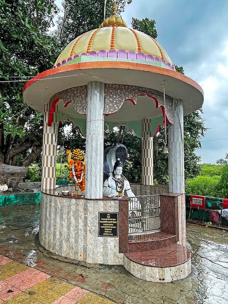 मुखमंडप, सभामंडप व सभामंडपाच्या मध्यभागी गर्भगृह अशी या मंदिराची रचना आहे. प्रांगणातून चार पायऱ्या चढून उंच अधिष्ठानावर असलेल्या मंदिराच्या मुखमंडपात प्रवेश होतो. मुखमंडपातील चार स्तंभ एकमेकांना महिरपी कमानीच्या आकारांनी जोडलेले आहेत. या चार स्तंभांच्या मध्यभागी असलेल्या चौथऱ्यावर नंदीचे स्थान आहे. याच चौथऱ्यावर मोडी लिपीतील शिलालेख आहे व त्यात १६९७ या वर्षाची नोंद आहे. पुढे संगमरवरी फरसबंदी असलेल्या सभामंडपात प्रवेश होतो. या सभामंडपात होम कुंड व एका चौथऱ्यावर नंदीची मूर्ती आहे. या सभामंडपाच्या मध्यभागी प्रदक्षिणा मार्ग सोडून गर्भगृहाची रचना आहे.