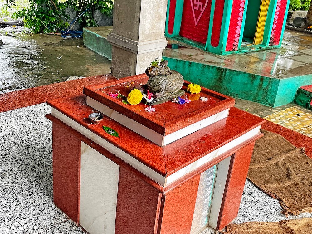 या गर्भगृहाला दर्शनी बाजूकडून जाण्यासाठी व मागील बाजूने बाहेर पडण्यासाठी असे दोन दरवाजे आहेत. गर्भगृहात मध्यभागी मोठ्या शाळुंकेमध्ये गौतमेश्वर महादेवाचे लिंग आहे. त्यावर तांब्याचा पत्रा बसवण्यात आलेला आहे.