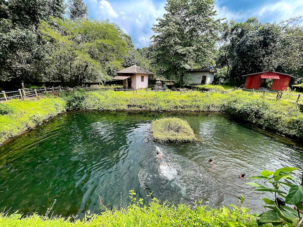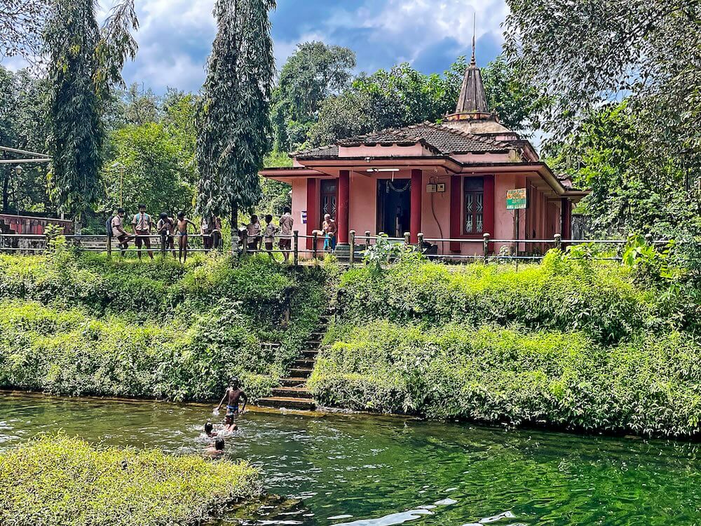 या मंदिरासमोर चारही बाजूंनी चिऱ्याच्या दगडांनी बांधलेले मोठे तळे आहे. त्याच्या काठाशी उभे राहून मोठ्याने ओंकाराचा निनाद केला असता पाण्यातून बुडबुडे येतात, असे येथील स्थानिकांचे म्हणणे आहे. असाच प्रकार येथून सुमारे २०० किमी अंतरावरील मठ बुद्रुक या मालवण तालुक्यातील गावामधील बोंबडेश्वराच्या मंदिरात पाहावयास मिळतो. तेथील तळ्यातूनही बुडबुडे येतात. सिंधुदुर्ग जिल्ह्यातील नाधवडे हे गाव तर उमाळ्याचे गाव म्हणून प्रसिद्ध आहे. तेथील वाहत्या पाण्यातून असे बुडबुडे येतात. याची वैज्ञानिक मीमांसा अशी की भूस्तराखाली असलेल्या खडकांत काही सच्छिद्र खडकही असतात. त्यांतील पोकळीत हवा असते. कोकणात बेसॉल्ट प्रकारचे खडक आहेत. त्यांत क्षार असतात. ते येथील प्रचंड पावसामुळे हळुहळू वाहून जातात. त्यामुळे खडक सच्छिद्र बनतात. मोठ्याने केलेल्या आवाजामुळे पाण्यात कंपने निर्माण होतात. त्या कंपनांमुळे खडकांच्या पोकळीतील हवा बाहेर येते व त्यामुळे बुडबुडे निर्माण होतात. असे बुडबुडे टाळी वाजवली वा जोरात ओरडले तरीही येतात. नेत्रावली अभयारण्यात जंगलसफारीसाठी येणारे पर्यटक हा नैसर्गिक चमत्कार अनुभवण्यासाठी येथेही आवर्जून येतात.