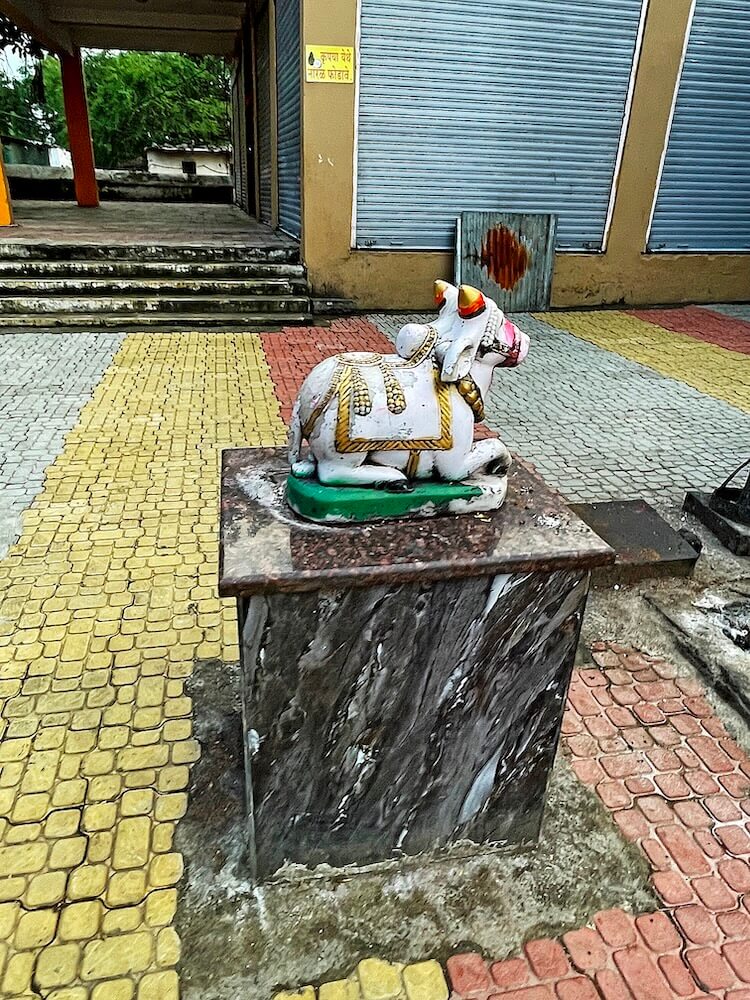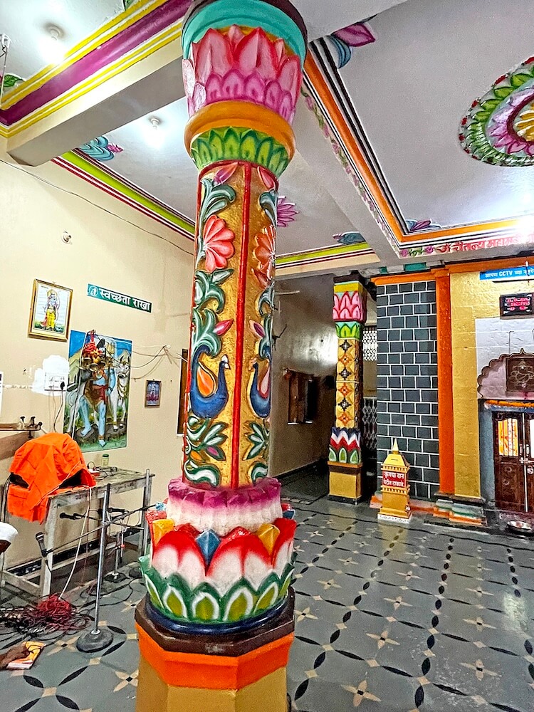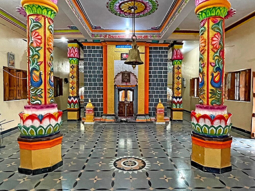 उभ्या धारेची नक्षी आहे. तेथील महिरपी तोरणात गणेश शिल्प आहे. गर्भगृहात वज्रपीठावर एकमेकांना महिरपी कमानीने जोडलेले आठ स्तंभ असलेले तीन मखर आहेत. उजव्या मखरात दोन शिवपिंडी व इतर दोन मखरात गोरक्षनाथाच्या दोन मूर्ती आहेत. यातील एक मूर्ती प्राचीन लाकडी, तर दुसरी मूर्ती पाषाणाची आहे. गर्भगृहाच्या बाह्यबाजूने प्रदक्षिणा मार्ग आहे.