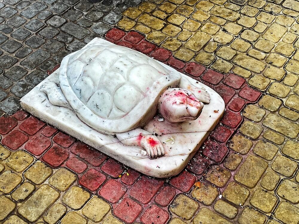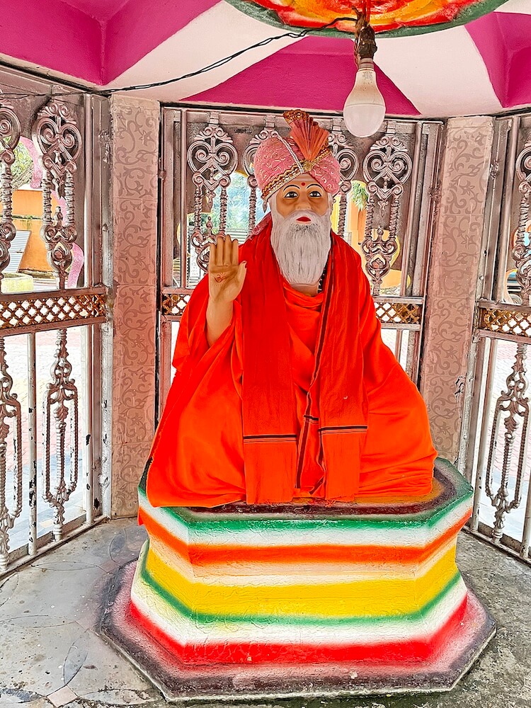 प्रांगणात मंदिरासमोर दिवंगत महंतांचे समाधी मंदिर आहे. या पंचकोनी मंदिरात महंतांची ध्यानस्थ मुद्रेतील मूर्ती आहे. मंदिराच्या छतावर चार थरांचे पंचकोनी शिखर आहे. शिखराच्या खालील चार थरात प्रत्येकी पाच देवकोष्ठके आहेत. शीर्षभागी आमलक व कळस आहे.