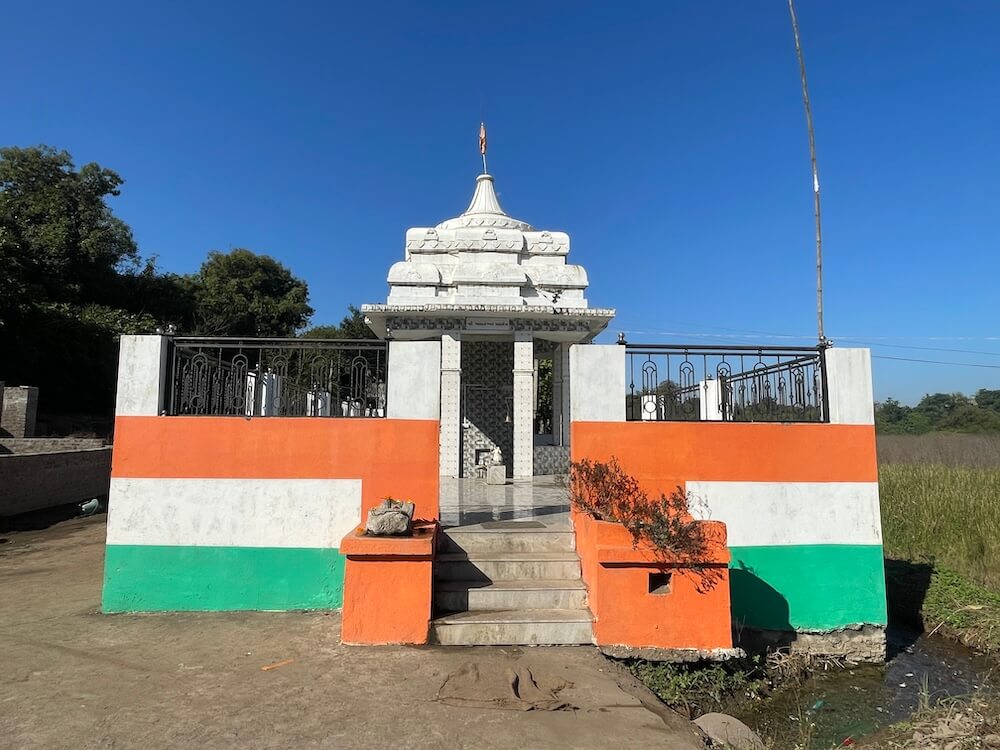 Some distance away, within the fields, stands the temple of Siddheshwar Mahadev, renovated in recent years. A large sheet-covered canopy stands before it. Architecturally, the temple consists of Sabha mandap (assembly hall), an Antarala (vestibule) and a Garbhagriha, constructed in a modern style. A domed shikhara crowns the sanctum. On the walls of the sabha mandap are displayed images of the twelve Jyotirlingas. Within the sabhamandap, before the sanctum, Nandi is enshrined upon a raised platform,