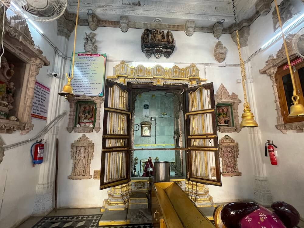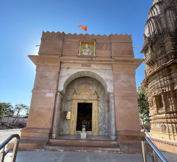 Opposite the main shrine is the temple of Ambamata. It houses idols of Ambamata and Bahuchar Mata, unearthed during excavations in the Solanki era. The complex is dotted with smaller shrines dedicated to Kashivishwanath, Mankeshwar, Rameshwar and Panchnath Mahadev, alongside temples for North-facing Hanuman, Batuk Bhairav and a right-trunked Ganesha. The entrance to the Hanuman temple features the ‘Navagrahas’ (nine planets),