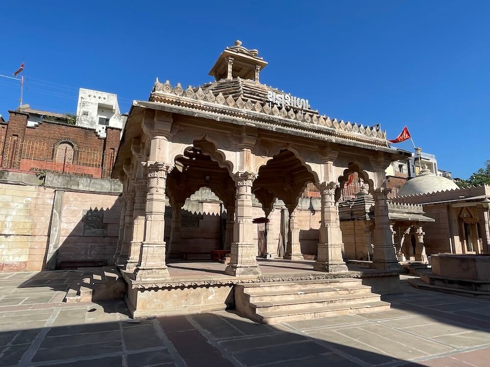 while the Batuk Bhairav shrine is carved with seven Yakshas. For the convenience of pilgrims, the precinct includes a guest house, a refectory, a ‘Yagnashala’ (sacrificial hall) and the administrative office. A statue of the poet-saint Narsi Mehta also graces the grounds.