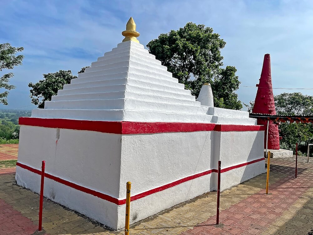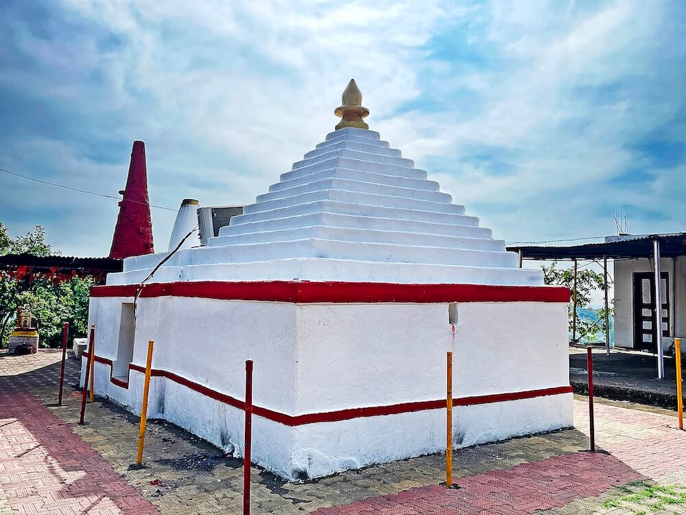 मंदिराच्या छतावर प्रवेशद्वाराजवळ दीपस्तंभाच्या आकाराचे उंच व निमुळते शिखर आहे. या शिखरावर कळस नसल्याने ते वैशिष्ट्यपूर्ण भासते. गर्भगृहाच्या छतावर पिरॅमिडसारखे वर निमुळते होत गेलेले चौदा चौकोनी पायऱ्यांचे शिखर आहे. त्यावर आमलक व कळस आहे. मंदिराच्या प्रांगणात उजव्या बाजूला धर्मशाळेची वास्तू आहे.