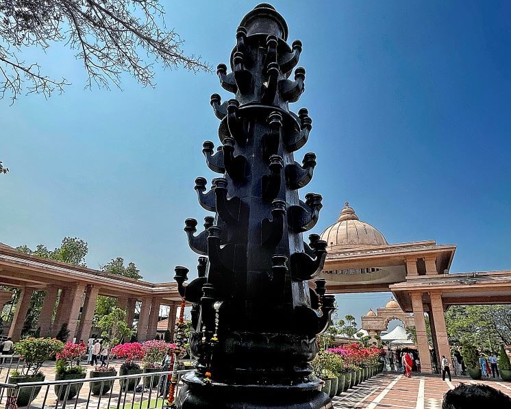 मिळते. त्यामध्ये अनेक शोभेची व फुलझाडे आहेत आणि संपूर्ण परिसराला फरसबंदी केलेली असल्यामुळे हा परिसर वैशिष्ट्यपूर्ण भासतो. रात्रीच्या वेळी मंदिरासह संपूर्ण परिसरात रोषणाई करण्यात येते.
