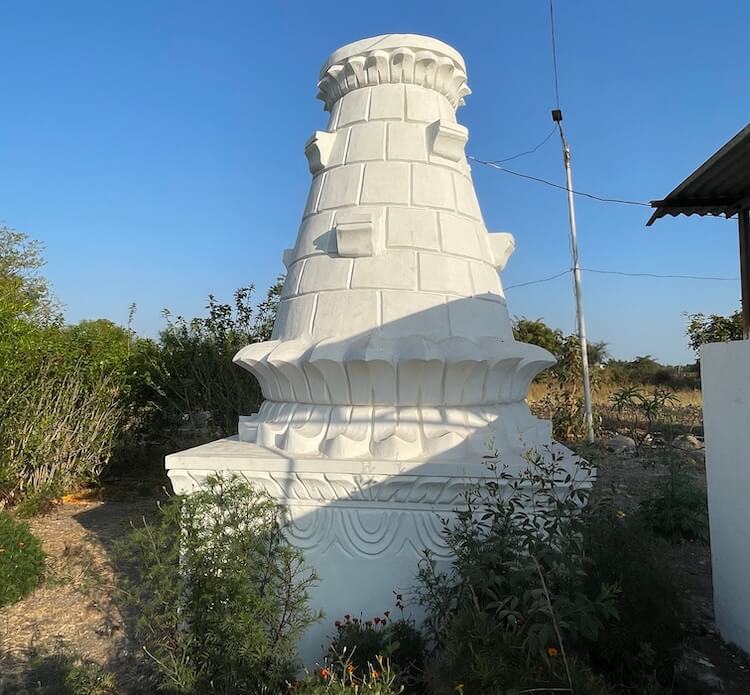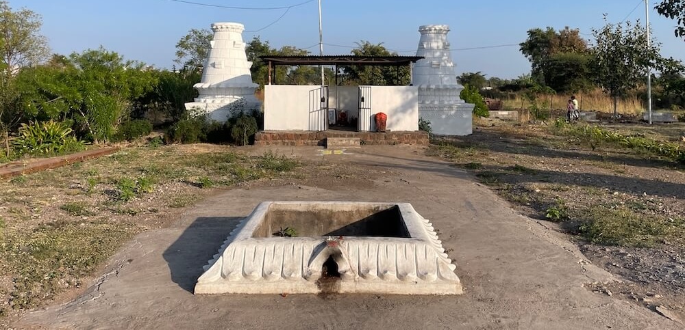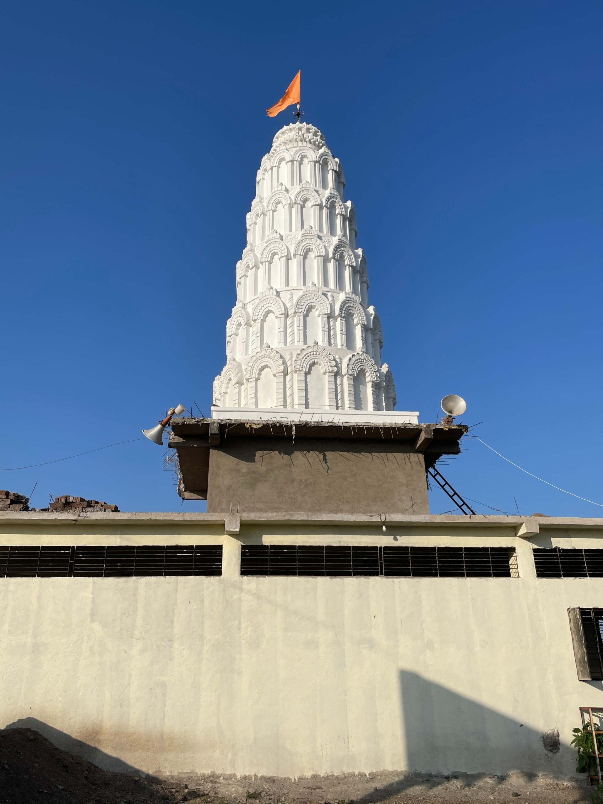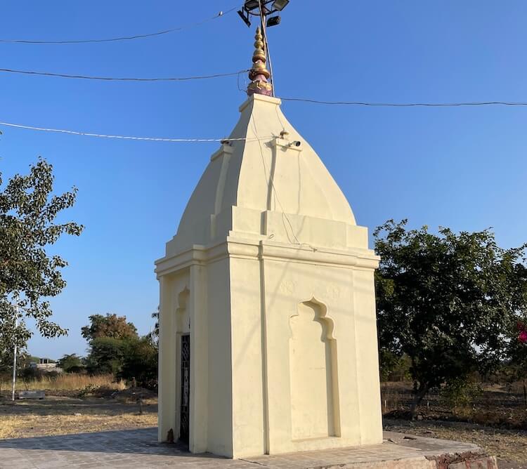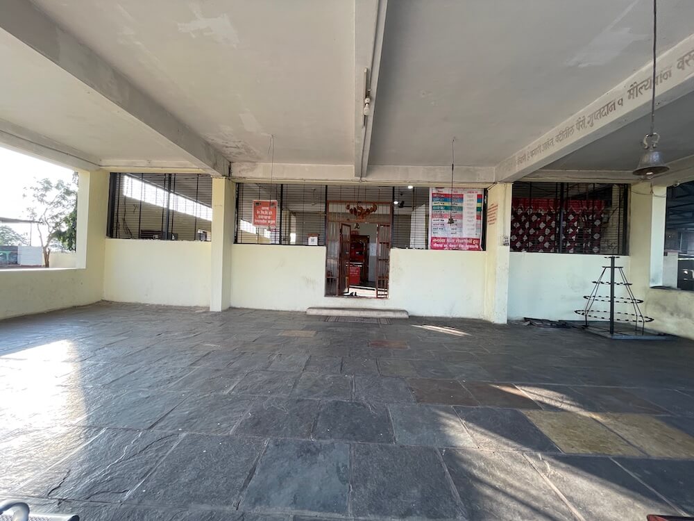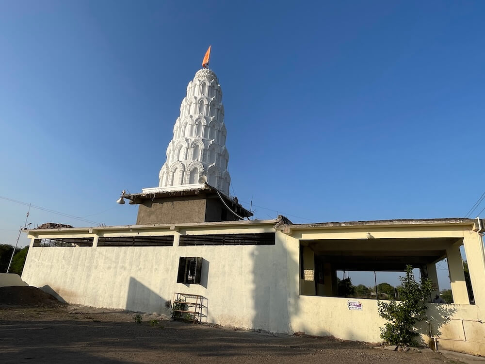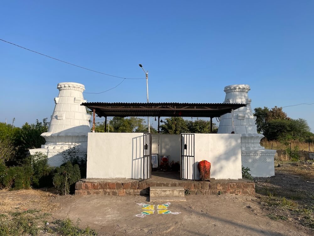 गावापासून काही अंतरावर एका दगडी चौथऱ्यावर त्याने या बाणाची प्रतिष्ठापना केली. त्यानंतर देवीच्या सेवेतच त्याने स्वतःला वाहून घेतले. देवीची पालखी घेऊन तो आसपासच्या गावांमध्ये फिरू लागला. या गावांतील ग्रामस्थ त्याला धान्य तसेच धनाच्या रूपाने मदत करत असत. या पैशांतूनच त्याने कच्च्या विटांचा वापर करून देवीची सुंदर मूर्ती घडवली आणि या मूर्तीवर शेंदराचे लेपन केले. कालांतराने ही मूर्ती जागृत झाली आणि ‘तिच्या दर्शनाने सर्व मनोकामना पूर्ण होतात’, अशी ख्याती पंचक्रोशीत पसरली. त्यामुळे अनेक भाविक तिच्या दर्शनासाठी येऊ लागले. १८९८ मध्ये येथे देवीचे मंदिर उभारण्यात आले. कालांतराने ‘समाजभूषण’ पुरस्काराने गौरवलेले आयाजी पाटील यांच्या पुढाकारातून या मंदिराचा जीर्णोद्धार करण्यात आला. अलीकडेच झालेल्या अन्य एका जीर्णोद्धारानंतर मंदिराला सध्याचे स्वरूप प्राप्त झाले. मंदिराच्या प्रवेशद्वारातून आत आल्यावर प्रांगण लागते. प्रांगणात मंदिरासमोर दोन दीपस्तंभ आहेत. अर्धखुला सभामंडप, अंतराळ आणि गर्भगृह अशी या मंदिराची संरचना आहे. गर्भगृहाच्या प्रवेशद्वाराच्या लाकडी द्वारपट्टीवर सुबक कलाकुसर आहे. प्रवेशद्वाराच्या ललाटबिंबावर गणेशाचे शिल्प आहे.