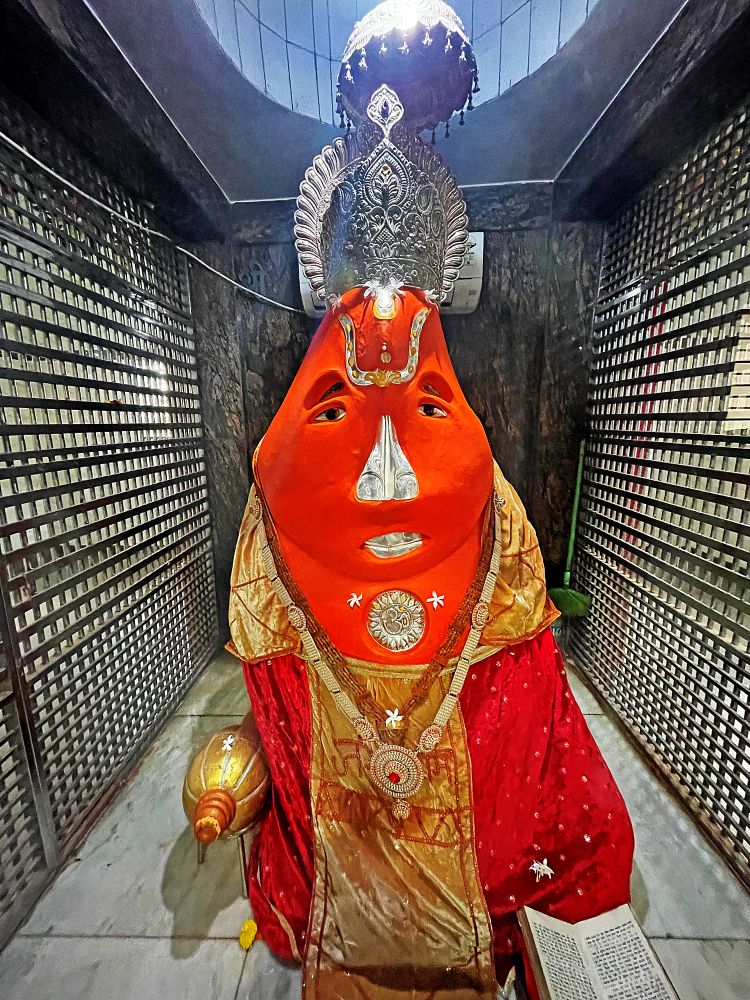 मंदिराभोवती असलेल्या आवारभिंतीत मंदिराचे मुख्य प्रवेशद्वार आहे. या प्रवेशद्वाराला एक मुख्य व दोन लहान दरवाजे आहेत. येथून मंदिराच्या फरसबंदी प्रांगणात प्रवेश होतो. मोठा सभामंडप व दोन गर्भगृहे अशी या मंदिराची संरचना आहे. मंदिराचे प्रवेशद्वार साधेसे आहे व त्यावरील भागात गर्भगृहात असलेल्या मारूतीची प्रतिमा आहे. बंदिस्त स्वरूपाच्या सभामंडपात उजवीकडे मारुतीचे व डावीकडे श्रीराम, लक्ष्मण व सीता यांचे गर्भगृह आहेत. सभामंडपापासून ही गर्भगृहे उंचावर आहेत. सभामंडपातून सहा पायऱ्या चढून मारूतीच्या गर्भगृहात प्रवेश होतो. गर्भगृहात मध्यभागी मारूतीची भली मोठी मूर्ती आहे. या शेणाच्या मूर्तीवर शेंदूराचे लेपन केलेले आहे. चांदीचा मुकुट परिधान केलेल्या या मूर्तीला डोळे, नाक व ओठ आहेत. या गर्भगृहाला बाहेरून प्रदक्षिणा मार्ग आहे.