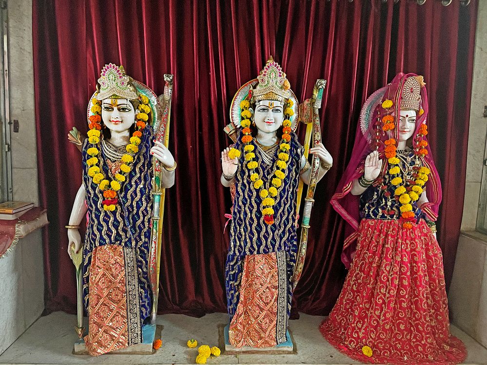 गर्भगृहाच्या समोरील बाजूस सभामंडपात उंच अधिष्ठानावर श्रीराम, लक्ष्मण व सीता यांचे गर्भगृह आहे. या गर्भगृहात त्यांच्या वैशिष्टपूर्ण संगमरवरी मूर्ती आहेत. या मूर्तींवर दररोज विविध अलंकार व वस्त्रे लेवविली जातात. मारूतीच्या गर्भगृहाजवळ असेच उंच अधिष्ठानावर शंकराचे मंदिर आहे. या मंदिराची रचनाही मारुतीच्या गर्भगृहाप्रमाणे आहे. या मंदिराच्या प्रवेशद्वाराच्या बाहेरील बाजूस चौथऱ्यावर नंदीची मूर्ती व गर्भगृहात जमिनीवर शिवपिंडी आहे. पिंडीच्या मागील भिंतीतील देवकोष्टकामध्ये पार्वती मातेची मूर्ती आहे.