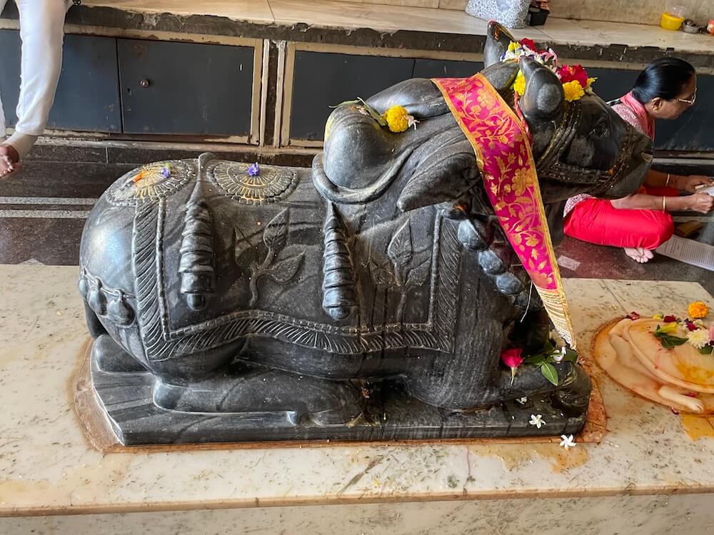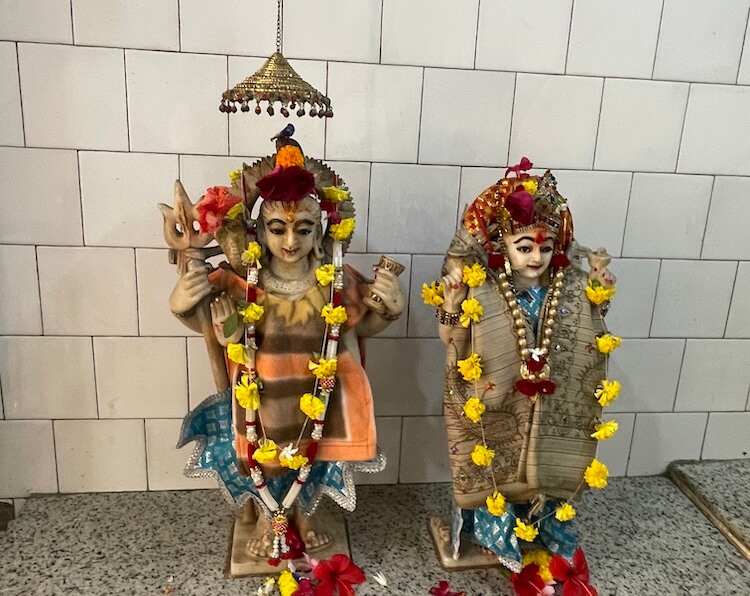 In the shrine behind the sanctum are idols of Parvati and Ganesh.