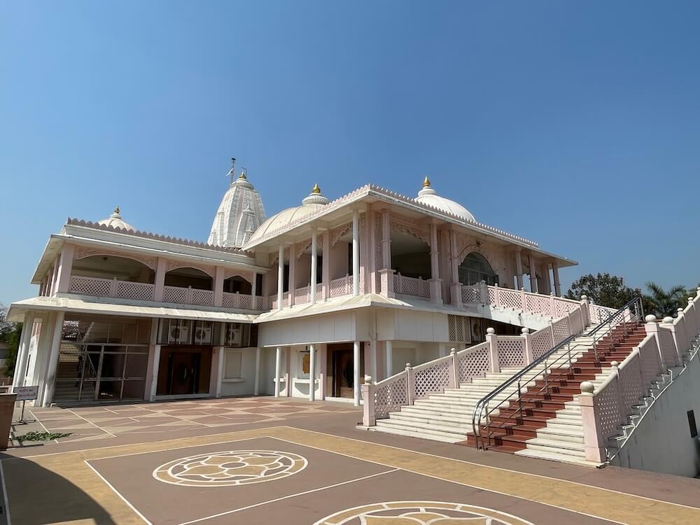 The temple, constructed in 1978, displays a modern architectural style and has been built using gleaming white marble. From the courtyard, a flight of thirty-one steps leads to the sabhamandap (assembly hall), situated on the second floor of this two-storeyed temple.