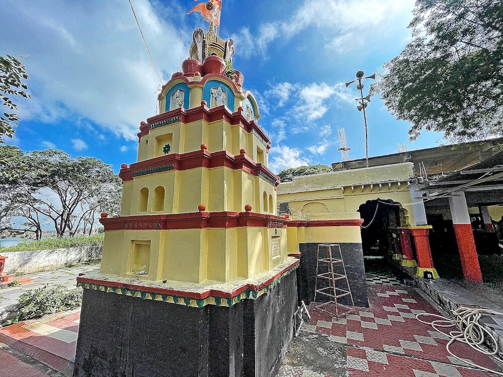 सुमारे २७ एकराच्या तलावात एका बाजूला हे मंदिर उभे आहे. अलीकडील काळात मंदिरापर्यंत जाणारा मार्ग विकसित करण्यात आला आहे. मंदिरास तटबंदी आहे. या तटबंदीत लोखंडी जाळी असलेले साधेसे प्रवेशद्वार आहे. मंदिराच्या प्रांगणात व परिसरात पार बांधलेले वृक्ष आहेत. मंदिरासमोर लोखंडी स्तंभांवर सिमेंट पत्र्याचे छत असलेला रंगमंडप आहे.