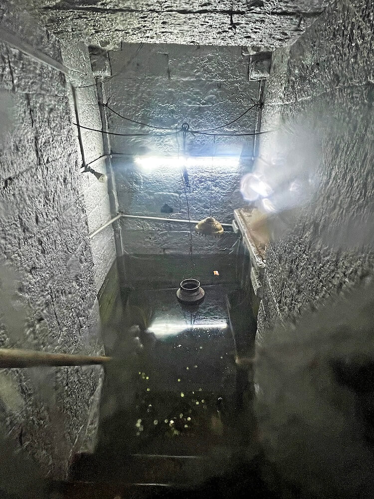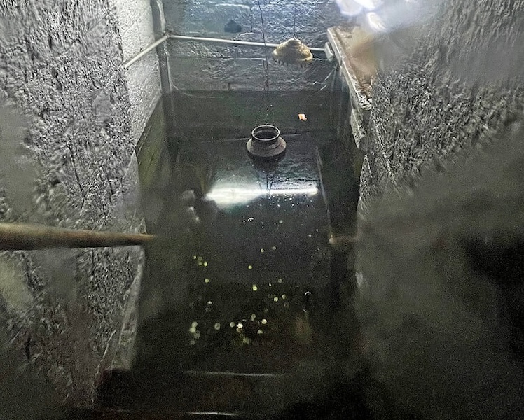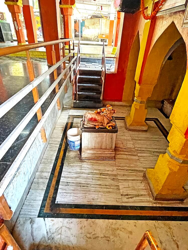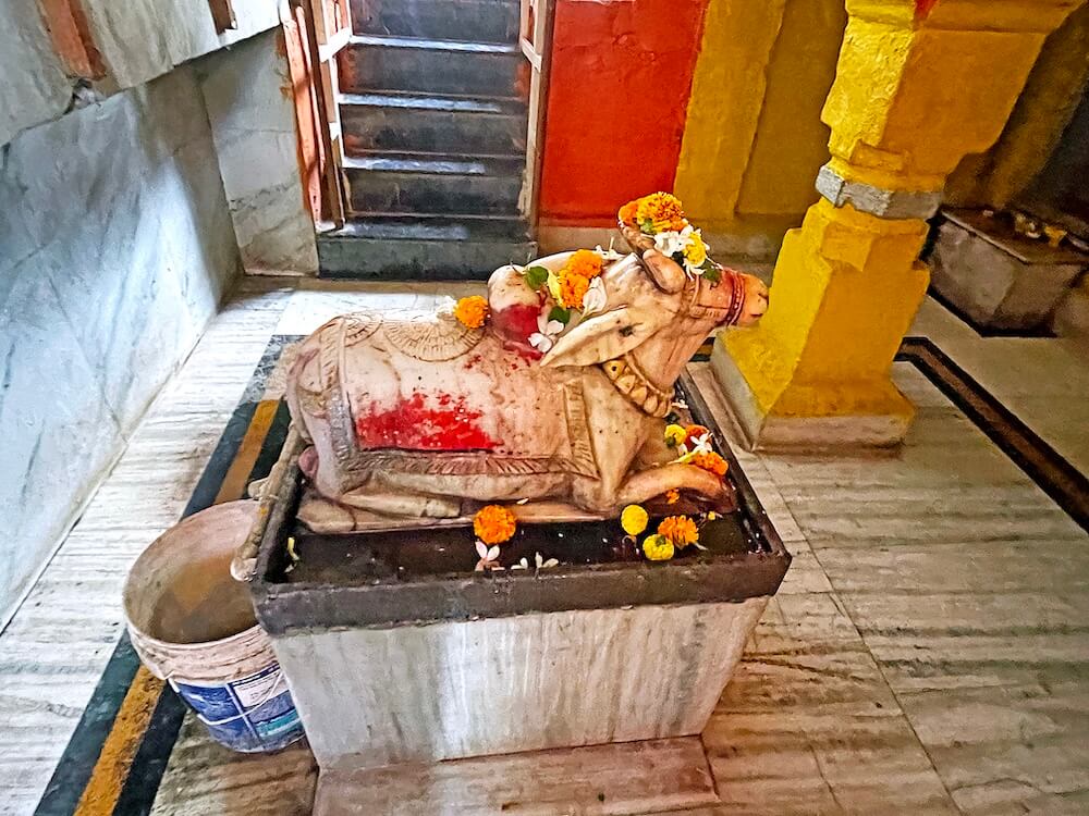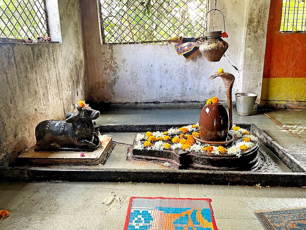 पुढे सभामंडपापेक्षा काही फूट खोल अंतराळ आहे. अंतराळात उतरण्यासाठी डाव्या व उजव्या बाजूने प्रत्येकी तीन पायऱ्या आहेत. अंतराळात गर्भगृहाच्या प्रवेशद्वारासमोर वज्रपीठावर नंदीची मूर्ती आहे. नंदीमूर्तीच्या दोन्ही बाजूला पाषाणी स्तंभ आहेत. गर्भगृहाच्या प्रवेशद्वारात ललाटबिंबावर श्रीगणेशशिल्प आहे. गर्भगृह सभामंडपापेक्षा सुमारे बारा फूट खोल असून खाली उतरण्यासाठी पायऱ्या आहेत. गर्भगृहात जमिनीवर शिवपिंडी आहे. तलावातील पाणी वाढते तेव्हा ही शिवपिंडी श्रावण ते माघ मासापर्यंत, म्हणजेच सुमारे सहा महिने पाण्याखाली असते. त्यावेळी या शिवपिंडीचे पूजन बंद होते व त्या कालावधीत सभामंडपात असलेल्या शिवपिंडीवर भाविक अभिषेक करतात.