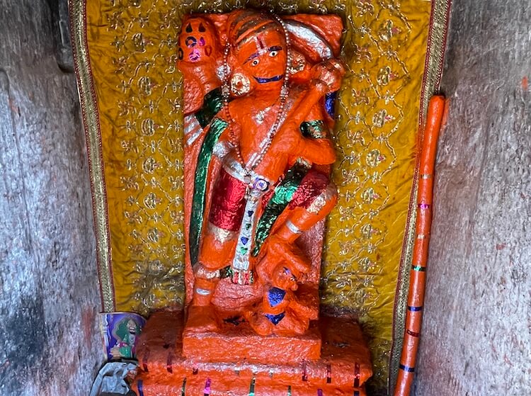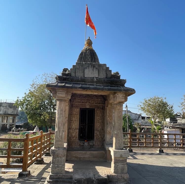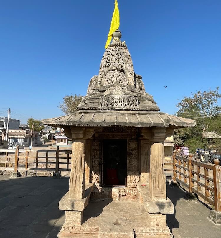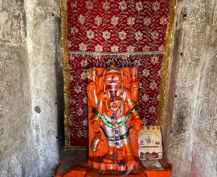 The temple is an architectural marvel built in the ‘Panchayatana’ configuration. In this specific style, a central primary shrine is positioned upon an elevated plinth or ‘Jagati’, flanked by four subordinate shrines at the cardinal corners. Notable examples of this style include the Dashavatara Temple at Deogarh in Uttar Pradesh, as well as several shrines in Khajuraho and Bhubaneswar. At Asoda, three of the four subsidiary shrines remain in a commendable state of preservation, whilst only the foundation of the south-western shrine survives. To the left of the main temple resides a shrine dedicated to Hanuman, with a Ganesha shrine situated to the right. At the rear, towards the south-west and north-west, lie the sub-shrines of the Sun Deity and Lord Vishnu, respectively. The central sanctum enshrines the Shivalinga of Jasmalnathji Mahadev.