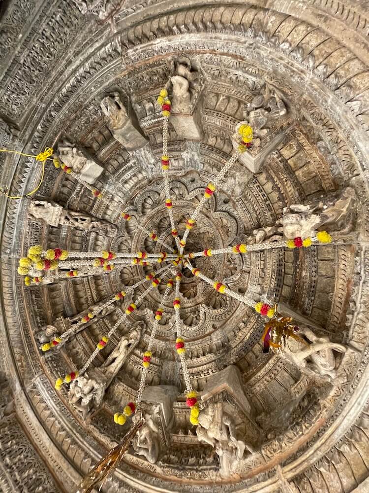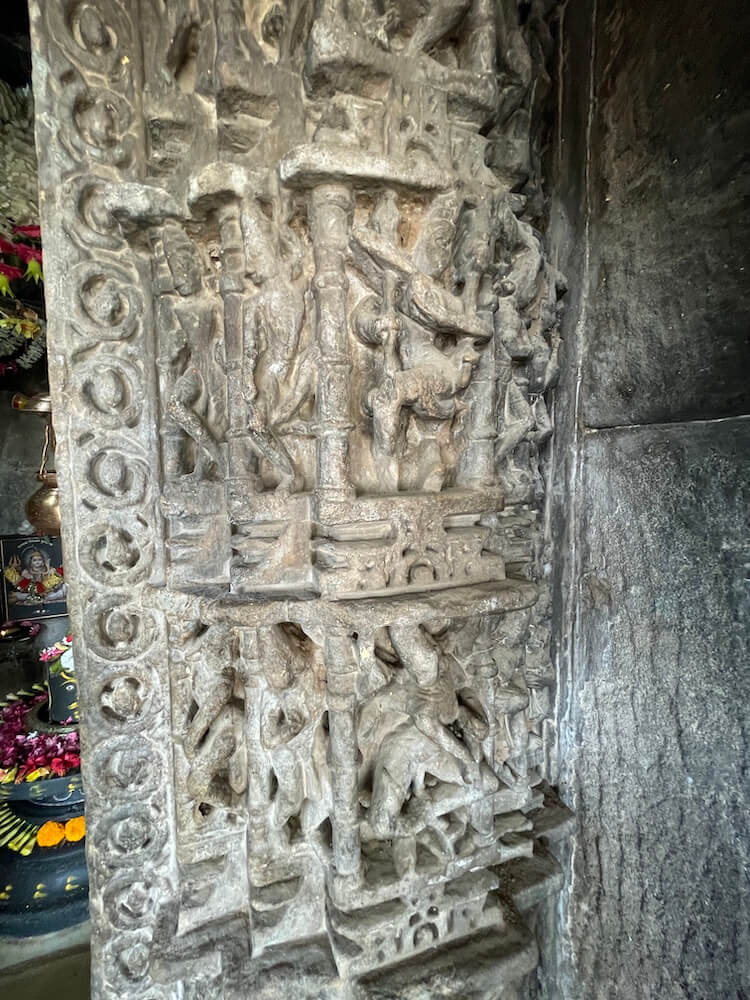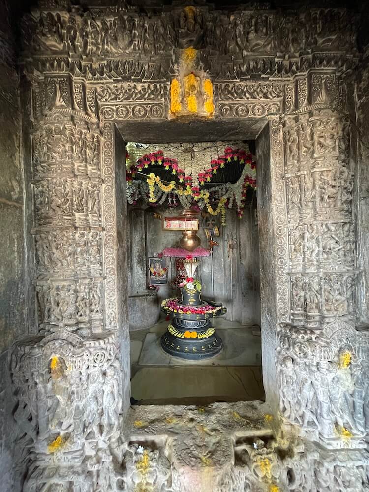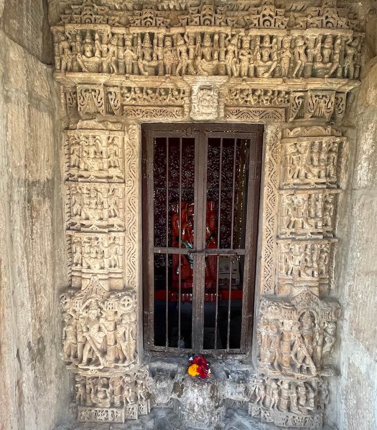 Figures of gatekeepers are carved on either side of the entrance. The archway leading to the assembly hall is decorated with intricate motifs and the hall itself belongs to the ‘Chatushki’ category.