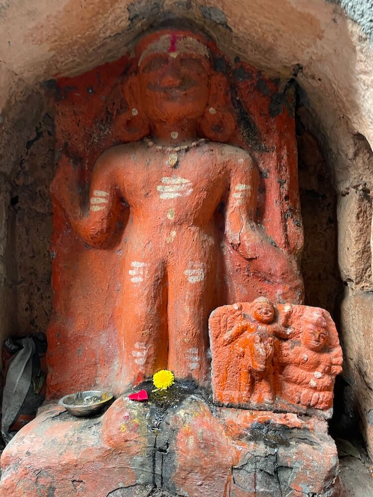 बिंदुसरा नदीपासून काही अंतरावर असलेले हे मंदिर अत्यंत अरुंद गल्लीत आहे. मंदिरापर्यंत वाहने जाण्याचा रस्ता नसल्याने येथे पायी चालत यावे लागते. मंदिरास भक्कम तटबंदी आहे. या तटबंदीला लागून वाडे व राहती घरे आहेत. मंदिरास दुमजली प्रवेशद्वार आहे. प्रवेशद्वाराच्या वरील मजल्यावर नगारखाना आहे. प्रवेशद्वाराच्या वरील बाजूला दर्शनी भिंतीत शिलालेख दिसतो. शिलालेखातील अक्षरे उठाव शैलीतील आणि सुवाच्य आहेत. प्रवेशद्वारास नक्षीदार लाकडी झडपा बसविल्या आहेत. आत दोन्ही बाजूला पहारेकरी कक्ष आहेत. प्रवेशद्वारापेक्षा प्रांगण उंचावर असल्यामुळे तीन पायऱ्या चढून वर यावे लागते.