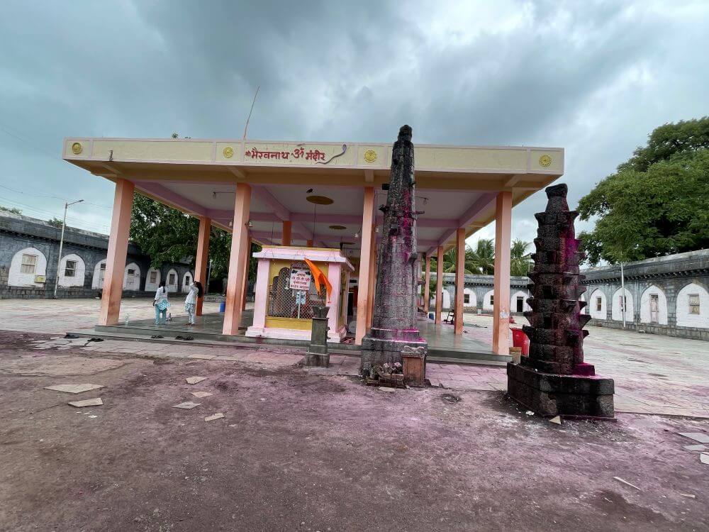 होण्याचा शाप दिला. शिवाने असा उःशापही दिला की या वृक्षाची पूजा केल्याखेरीज देवांच्या पूजेचे फळ मिळणार नाही. काळभैरव हा भक्तांना संकटातून वाचवतो आणि नवसाला पावतो, अशी श्रद्धा आहे. काळभैरवाचे येथील मंदिराच्या उभारणीचा ठोस इतिहास अनुपलब्ध आहे. परंतु येथे असलेली देवाची पालखी ही सातशे वर्षांपूर्वीची आहे, असे सांगितले जाते. त्यामुळे हे देवस्थान त्यापूर्वीचे असू शकते. इस १९७१ मध्ये सागवानी लाकडांचा वापर करून ग्रामस्थांनी मंदिराच्या प्रशस्त मंडपाचा जीर्णोद्धार केला होता.
