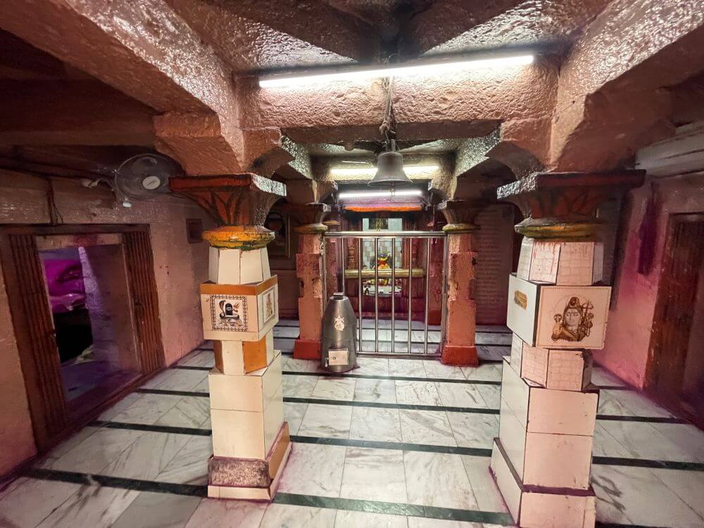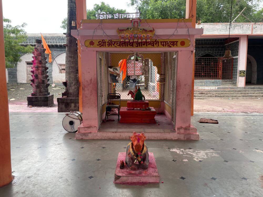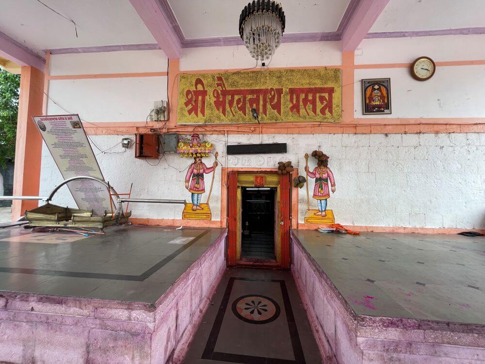 मुख्य गर्भगृहात काळभैरव नाथाचे स्वयंभू लिंग आहे. त्यावर चांदीचा सुंदर मुखवटा आहे. केवळ सकाळच्या पुजेच्या वेळीच या मुखवट्याखालील काळभैरवाच्या लिंगाचे दर्शन घेता येते. या गर्भगृहात केवळ काळभैरवाचेच स्थान आहे. त्याबाबत अख्यायिका अशी की एकदा काळभैरव व जोगेश्वरी देवी यांच्यात वाद झाला. त्यामुळे जोगेश्वरी देवी रुसून येथून साधारणतः दीड किमी अंतरावर, गावाच्या पूर्व दिशेला आडरानात, ओसाड जागेवर गेली व तेथेच थांबली. आजही तेथे जोगेश्वरी देवीचे मंदिर आहे.