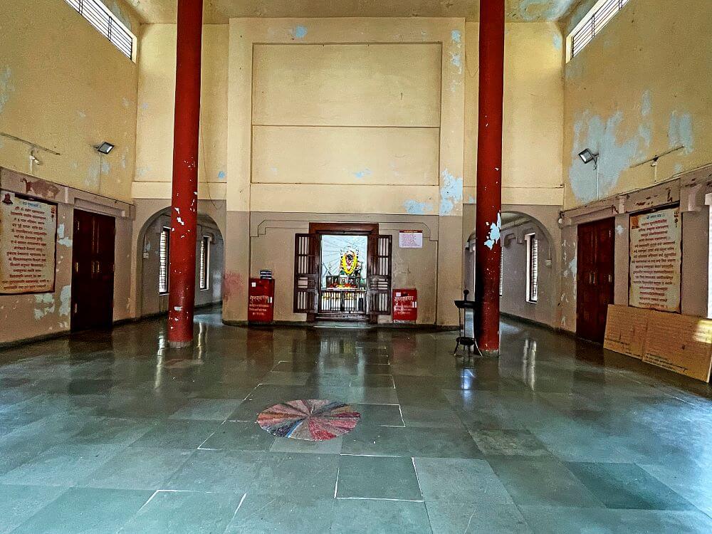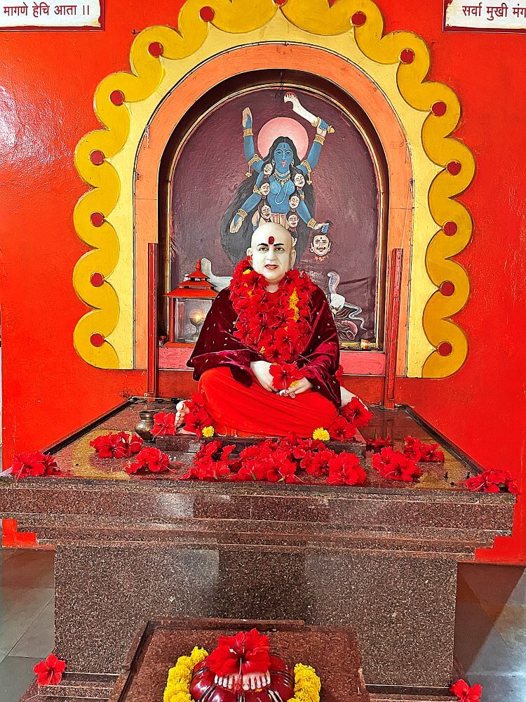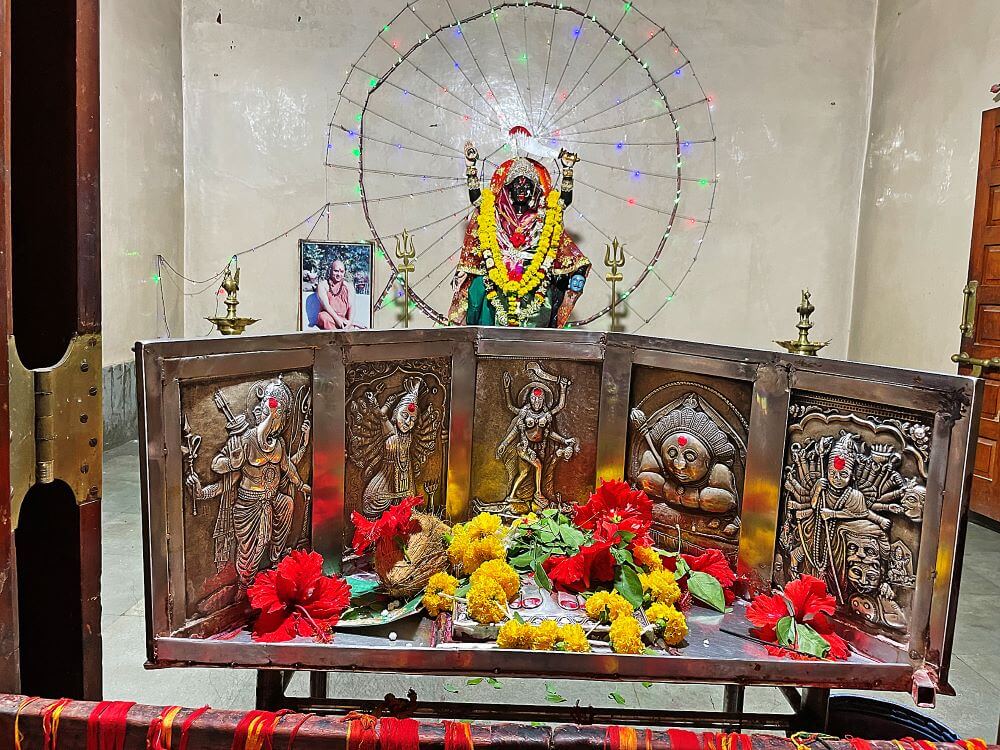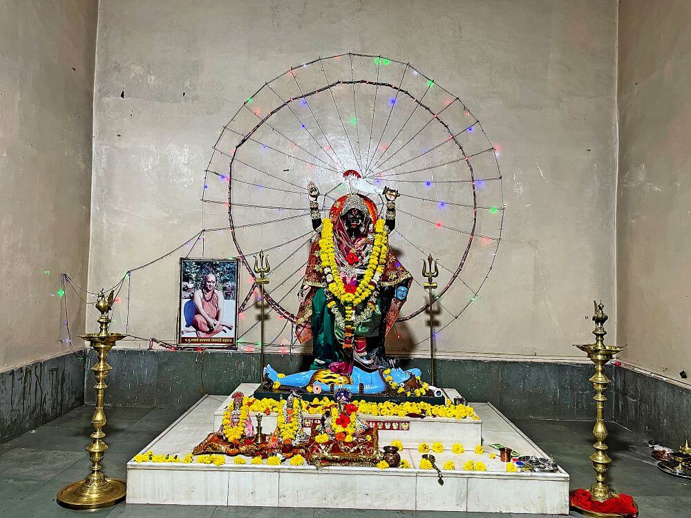 गर्भगृहात काळ्या संगमरवरी दगडात साकारण्यात आलेली देवीची सहा फूट उंचीची मूर्ती आहे. देवीच्या वरच्या बाजूचा उजवीकडील हात वरदायिनी मुद्रेत, तर डावीकडील हातात तलवार आहे. खालच्या बाजूचा उजवीकडील हात कल्याणकारी मुद्रेत असून डावीकडील हातात रक्तबीज राक्षसाचे शीर आहे. देवीच्या पायाखाली निद्रिस्त मुद्रेतील महादेव आहेत. मूर्तीच्या दोन्ही बाजूंना त्रिशूळ आहेत. मूर्तीच्या उजवीकडे स्वामी प्रणवानंद यांची, तर डावीकडे विठ्ठलाची मूर्ती आहे.