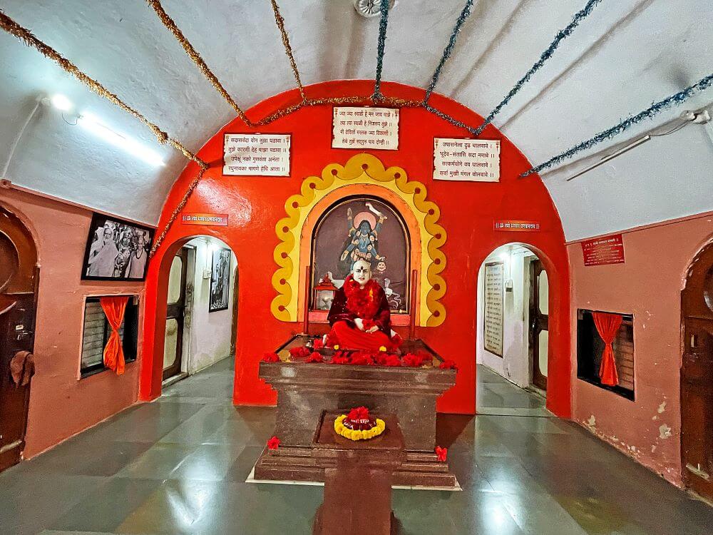 या मंदिराच्या मागील बाजूला असलेल्या स्वामी प्रणवानंद यांच्या समाधी मंदिराच्या सभामंडपात देव–देवतांच्या प्रतिमा, स्वामी प्रणवानंद तसेच स्वामी नित्यानंद यांच्या प्रतिमा, देवीस्तुती तसेच आरत्यांचे फलक आहेत. समोर एका चौथऱ्यावर स्वामींची पांढऱ्या संगमरवरी दगडातील मूर्ती असून त्यामागील बाजूस देवीचे चित्र आहे. स्वामी प्रणवानंद यांची मूर्ती असलेल्या चौथऱ्याखालील भुयारात त्यांनी समाधी घेतली होती.