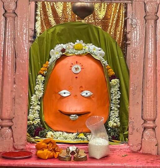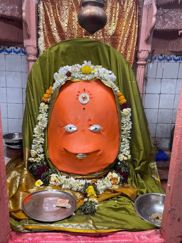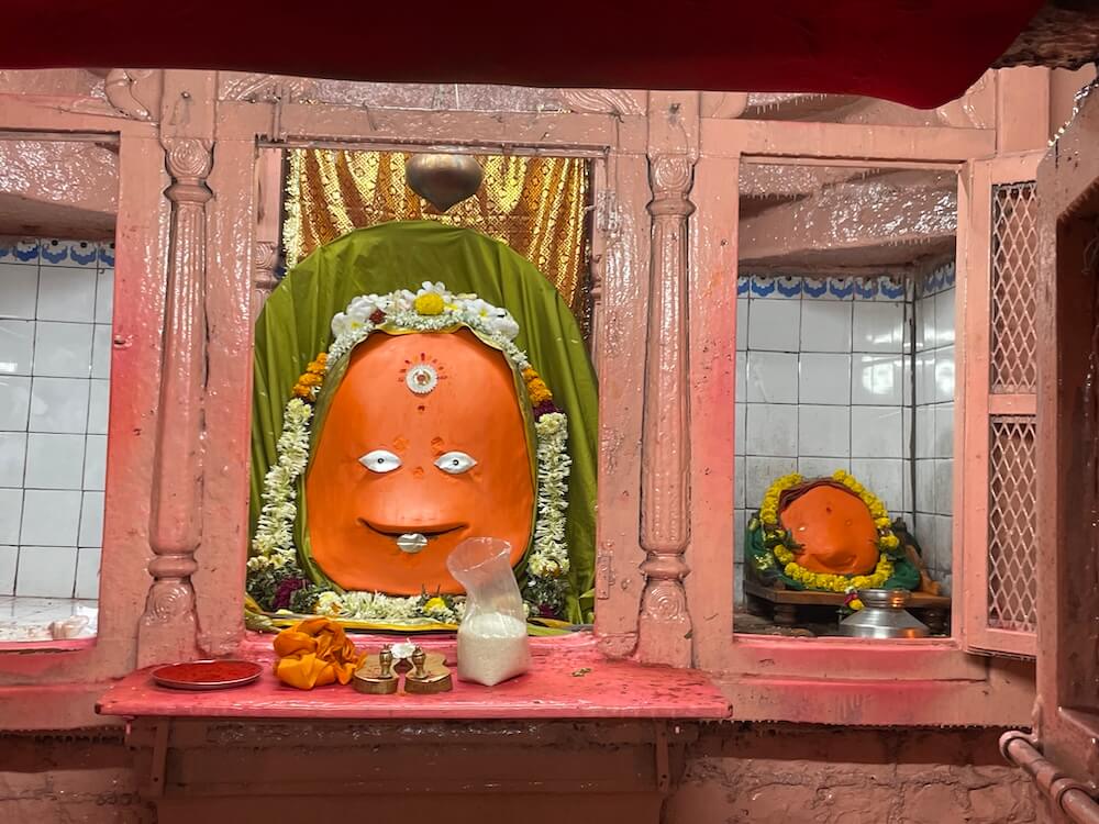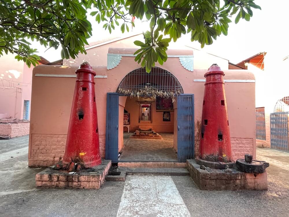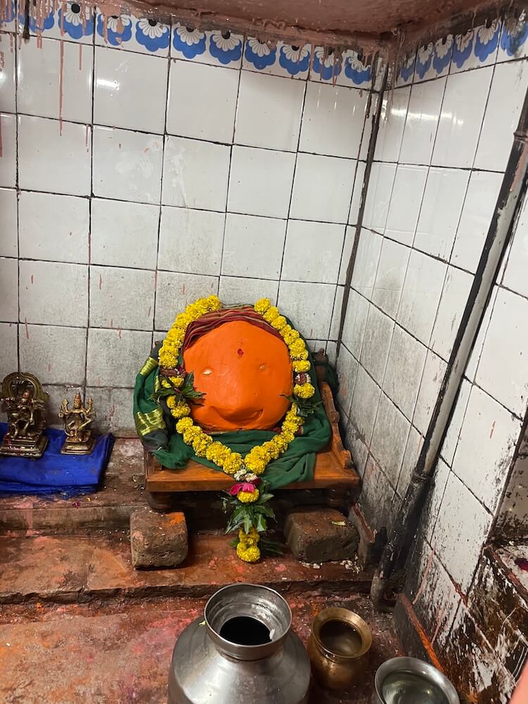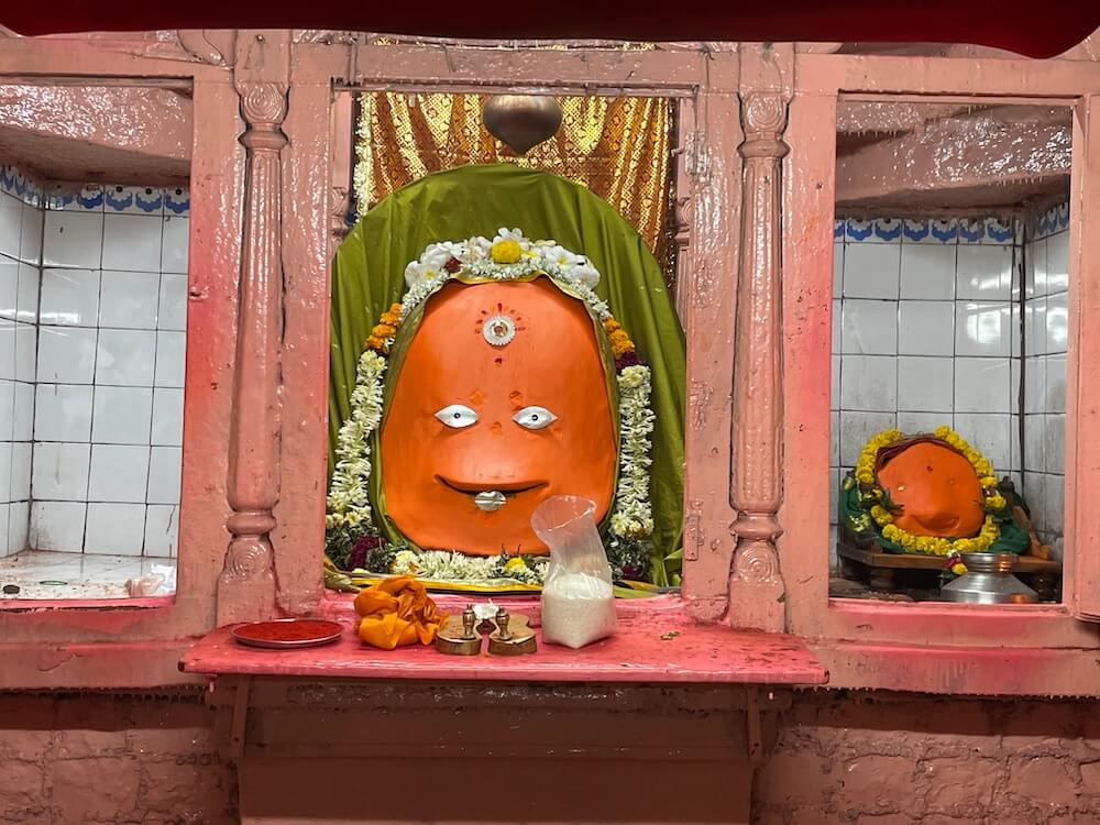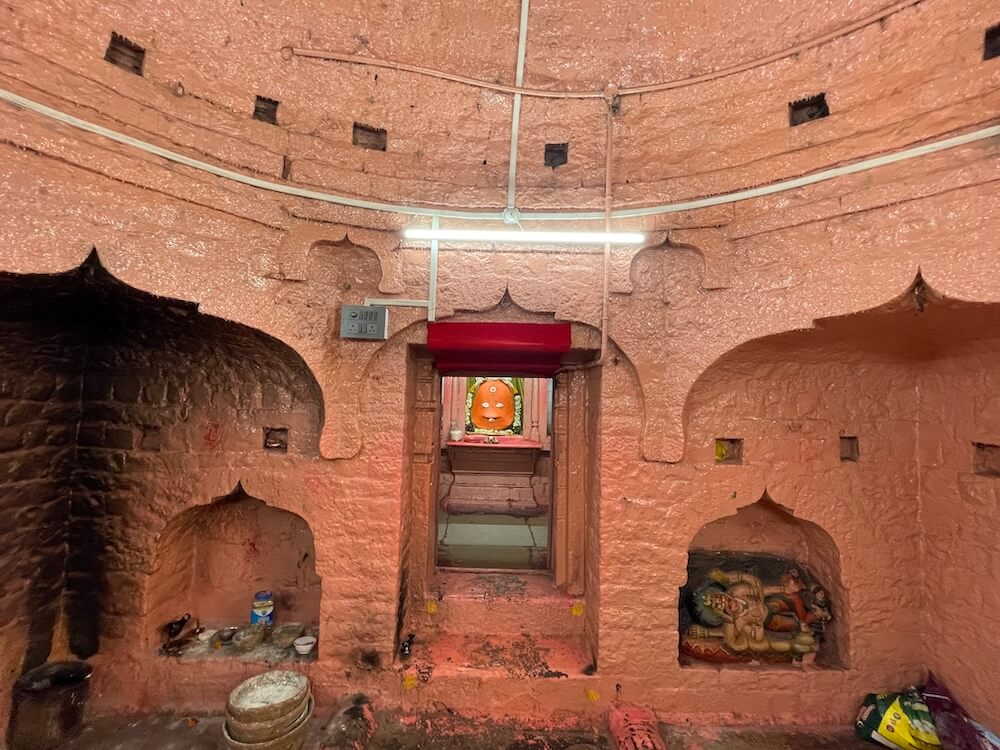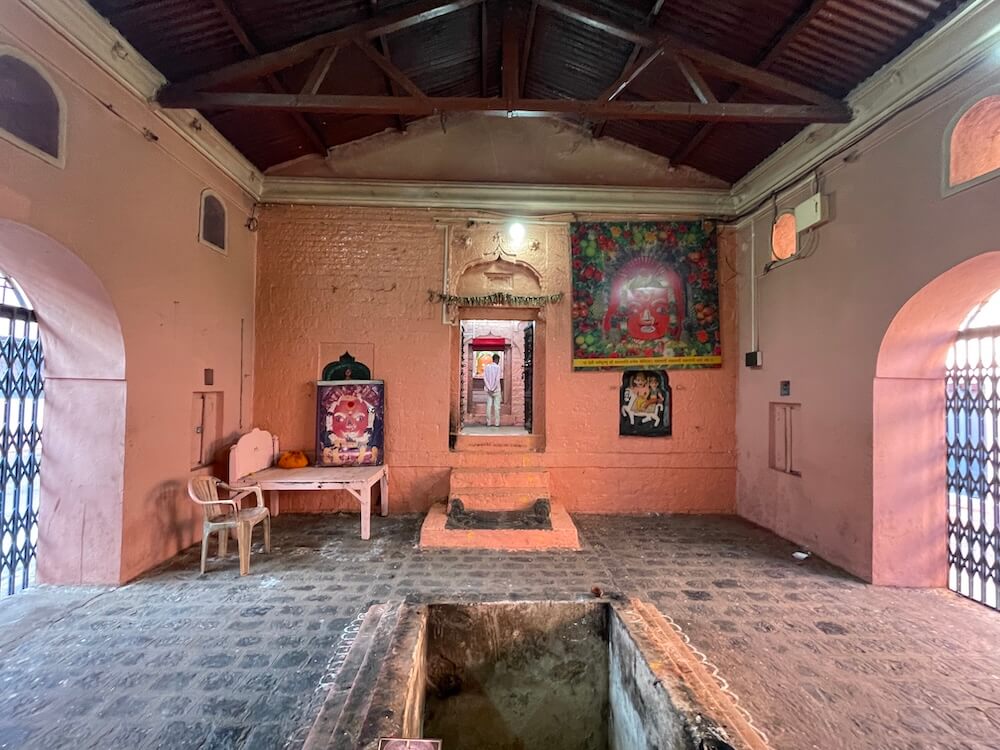अंतराळातून बाहेर पडण्यासाठी उजव्या व डाव्या बाजूला दरवाजे आहेत. अंतराळापुढे गर्भगृह आहे. गर्भगृहाचे प्रवेशद्वार अंतराळापेक्षा काहीसे उंचावर आहे. द्वारशाखा व ललाटपट्टीवरील नक्षी काहीशी अस्पष्ट झालेली आहे. गर्भगृहात वज्रपीठावर तांदळास्वरूपातील मूर्ती आहे. मूर्तीचा पुढील भाग देवीचे मुख आहे,