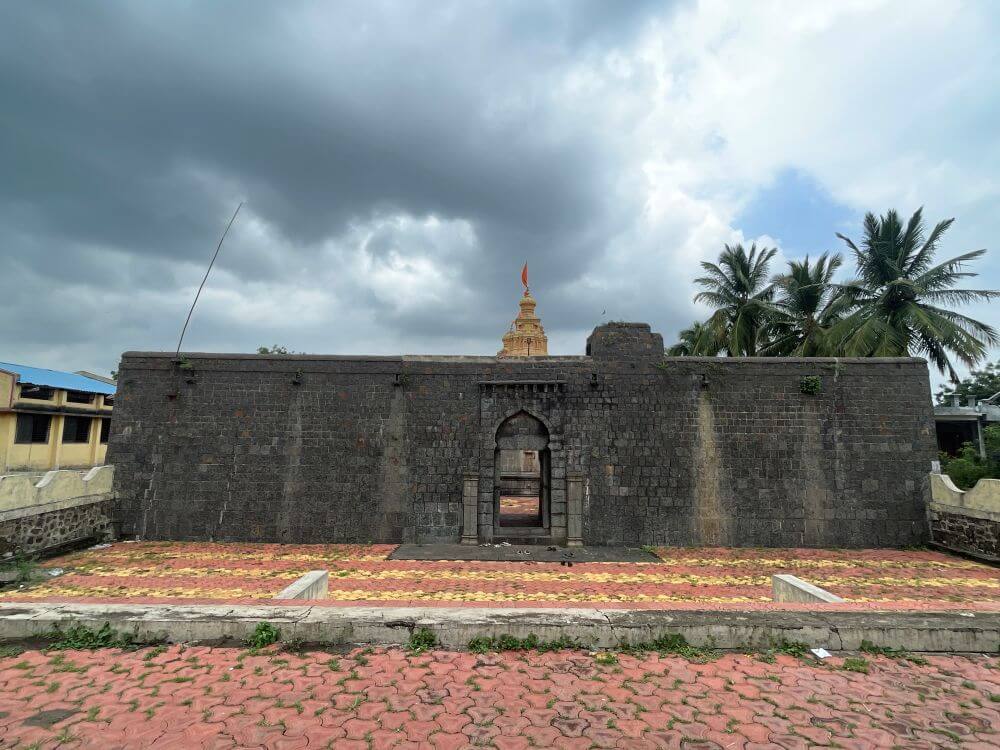 मंदिरास सुमारे पंधरा फूट उंच भक्कम दगडी तटबंदी आहे. त्यात भव्य प्रवेशद्वार आहे.