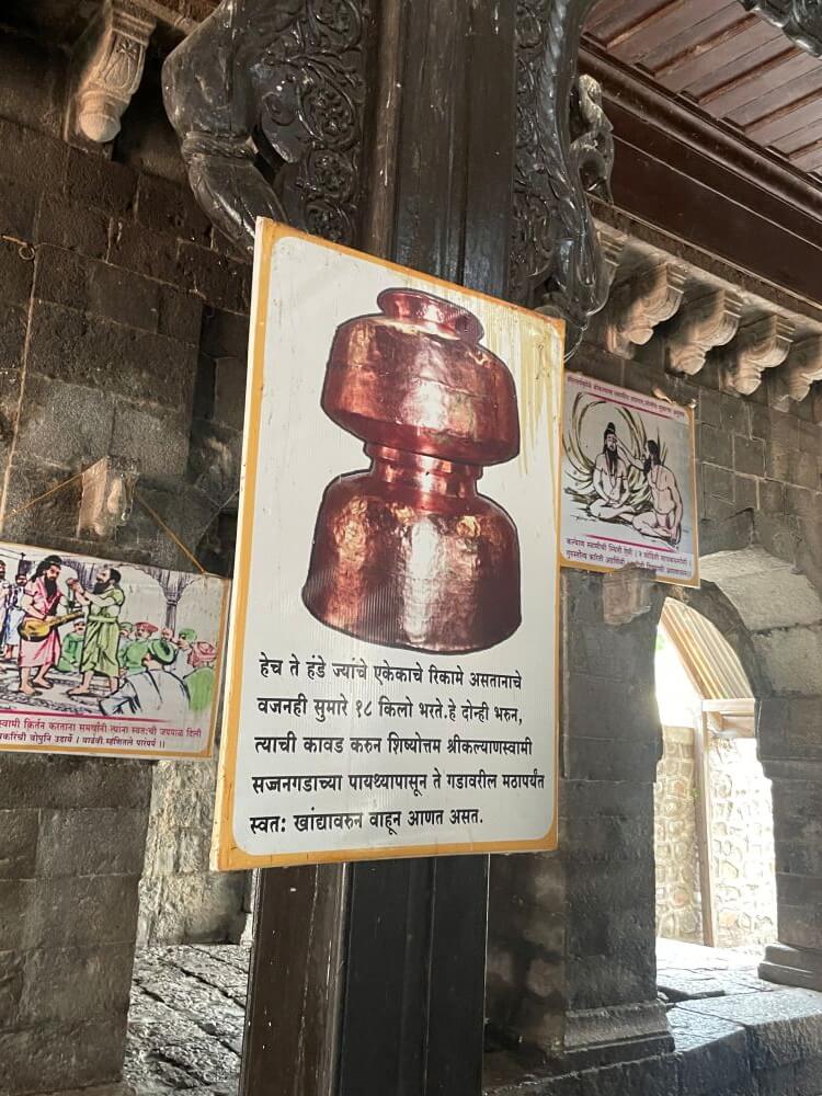 प्रवेशद्वारास दोन्ही बाजूला चौकोनी स्तंभ व नक्षीदार लाकडी झडपा आहेत. येथून मंदिराच्या प्रांगणात प्रवेश होतो. पुढे श्री कल्याणस्वामी समाधी मंदिराचा लाकडी दुमजली सभामंडप आहे. खुल्या स्वरूपाच्या या सभामंडपात दोन्ही बाजूला प्रत्येकी चार नक्षीदार स्तंभ आहेत. या स्तंभांवर वरच्या मजल्याच्या सज्जाचे कठडे आहेत. सभामंडपाचे वितान नक्षीदार आहे. सभामंडपात कल्याणस्वामींच्या आयुष्यातील ठळक घटना दाखवणारी माहितीचित्रे लावलेली आहेत.