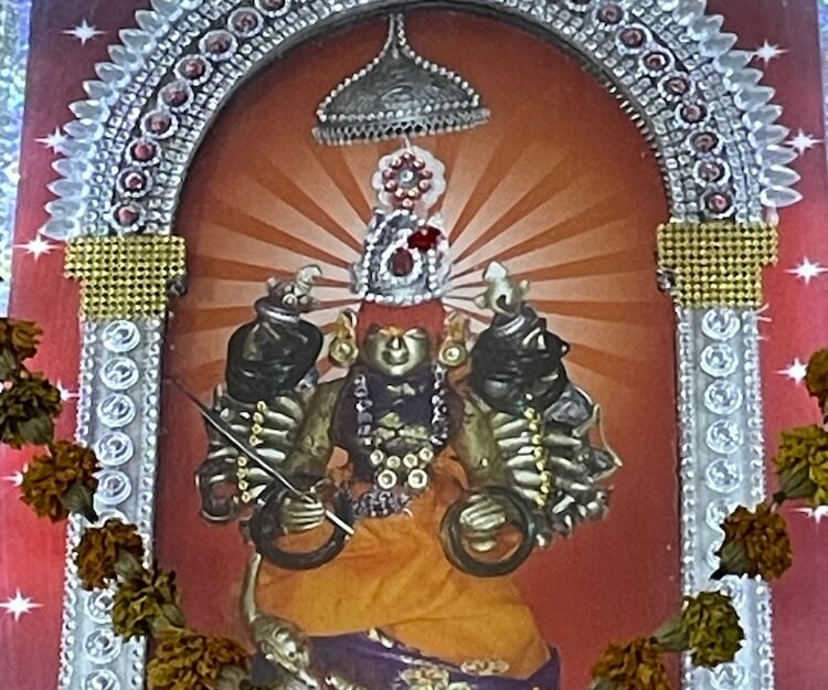 त्यावेळी किनगाव राजा हा परिसरही त्यांच्याच देखरेखीखाली होता. त्या काळात येथे दुष्काळ पडला होता. त्यामुळे अन्नपाण्यावाचून नागरिकांचे हाल होऊ नयेत, यासाठी राजे जगदेवराव यांनी आसाम राज्यातील गुवाहाटी येथून धान्य मागविले होते. त्या धान्यातील एका तांदळाच्या पोत्यातून देवीची पंचधातूची मूर्ती येथे आली. तेव्हापासून देवीचे वास्तव्य येथील गढीत आहे. देवीचे हे स्थान अतिशय जागृत असल्याची ग्रामस्थांची व भाविकांची श्रद्धा आहे. ही देवी नवसाला पावते व हाकेला धावून येते, असा भाविकांचा विश्वास आहे.लखुजीराजेंच्या काळात किनगाव येथे ही गढी बांधण्यात आली होती. सध्या ही गढी नष्ट झाली आहे. या जागेवर आता केवळ मातीची तटबंदी व तीन बुरुज शिल्लक आहेत. पूर्वी ही गढी सुमारे अर्धा एकर परिसरात पसरली होती आणि तिला चार बुरुज होते, असे सांगण्यात येते. या गढीतील तीन महालांमध्ये लखुजीराजे यांच्या परिवारातील सदस्य वास्तव्यास होते. सध्या लखुजीराजेंच्या वंशजांच्या कुटुंबातील ४९ परिवार विविध भागांमध्ये स्थायिक झाले आहेत, तर किनगाव राजा येथे केवळ तेरा कुटुंबे राहतात.