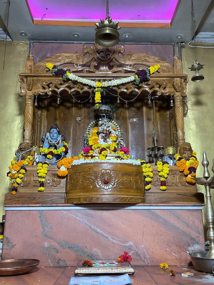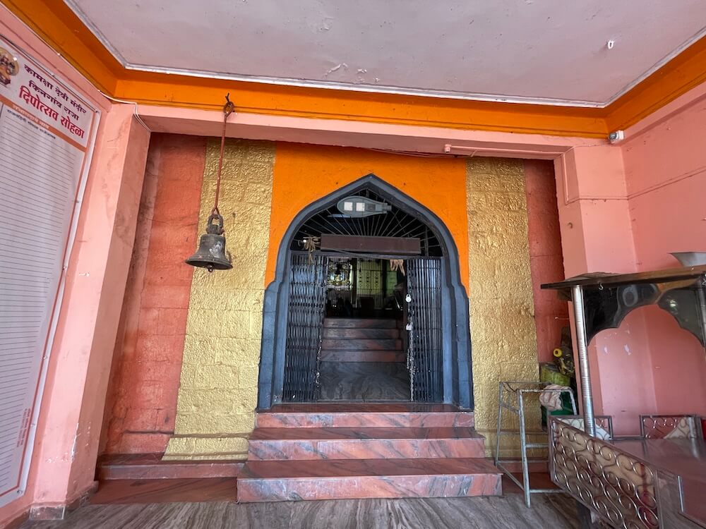 गढीच्या दिंडी दरवाजाच्या आत हे मंदिर वसलेले आहे. अलीकडेच या मंदिराचा जीर्णोद्धार करण्यात आला. मंदिराच्या प्रवेशद्वाराबाहेर छोटा मंडप आहे. गढीच्या दिंडी दरवाजाच्या दगडी कमानीचे प्रवेशद्वार व सभामंडप असे या मंदिराचे स्वरूप आहे. पूर्वी या दिंडी दरवाजावर नगारखाना होता. सभामंडपावर लाकडी छत आहे, तर गर्भगृहासमोर देवीचे वाहन असलेल्या सिंहाची पंचधातूची मूर्ती आहे. गर्भगृहात उंच चौथऱ्यावर काचेच्या कपाटातील लाकडी देवकोष्ठकात देवीची पंचधातूची मूर्ती प्रतिष्ठित आहे. मंदिराच्या वरच्या भागात जाण्यासाठी पायऱ्या आहेत. मंदिर परिसरात गुढीपाडव्याच्या उत्सवादरम्यान काढल्या जाणाऱ्या सोंगांसाठी वापरले जाणारे मुखवटे व मूर्ती ठेवलेल्या आहेत. हे मुखवटे कागद व बांबूच्या काड्यांचा वापर करून बनवले जातात.
