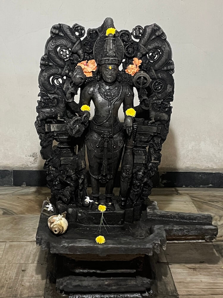 गर्भगृहात मागील भिंतीलगत वज्रपिठावर महादेवाची पितळी उत्सव मूर्ती आहे. पालखी सोहळ्यात ही मूर्ती पालखीत ठेवून ग्रामप्रदक्षिणा करण्यात येते. गर्भगृहाच्या बाह्य बाजूने प्रदक्षिणा मार्ग आहे. मंदिराचे छत कौलारू असून गर्भगृहाच्या छतावर दोन थरांचे शिखर आहे. शिखराचा खालील पहिला थर अष्टकोनी व दुसरा गोल घुमटाकार आहे. शिखराच्या शीर्षभागी स्तूपिका व त्यावर कळस आहे. प्रांगणात मंदिराच्या शेजारी श्रीविष्णू नारायण मंदिर आहे. यामध्ये प्राचीन विष्णू मूर्ती आहे. देवाच्या हातात शंख, चक्र, गदा व पद्म आहे. या मंदिराशेजारी कुवळेश्वरी देवीचे मंदिर आहे. येथील देवीची पूर्णाकृती मूर्ती अत्यंत देखणी आहे. मंदिरापासून काही अंतरावर भूमिका देवी मंदिर आहे. भूमिका देवी ही भूदेवता असून या मंदिरास भक्कम तटबंदी आहे. तटबंदीत भव्य व सुंदर प्रवेशद्वार आहे. या मंदिराची रचना कमलेश्वर महारुद्र मंदिरासारखीच आहे.