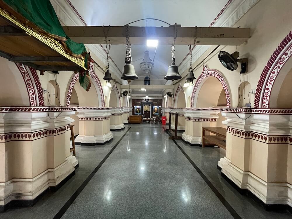मुख्य सभामंडप बंदिस्त स्वरूपाचा व दोन भागांत आहे. सुमारे वीस फूट लांबी रुंदीच्या पहिल्या भागात चारही बाजूंना चार फूट उंच कठडा आहे व त्यात कक्षासने आहेत.