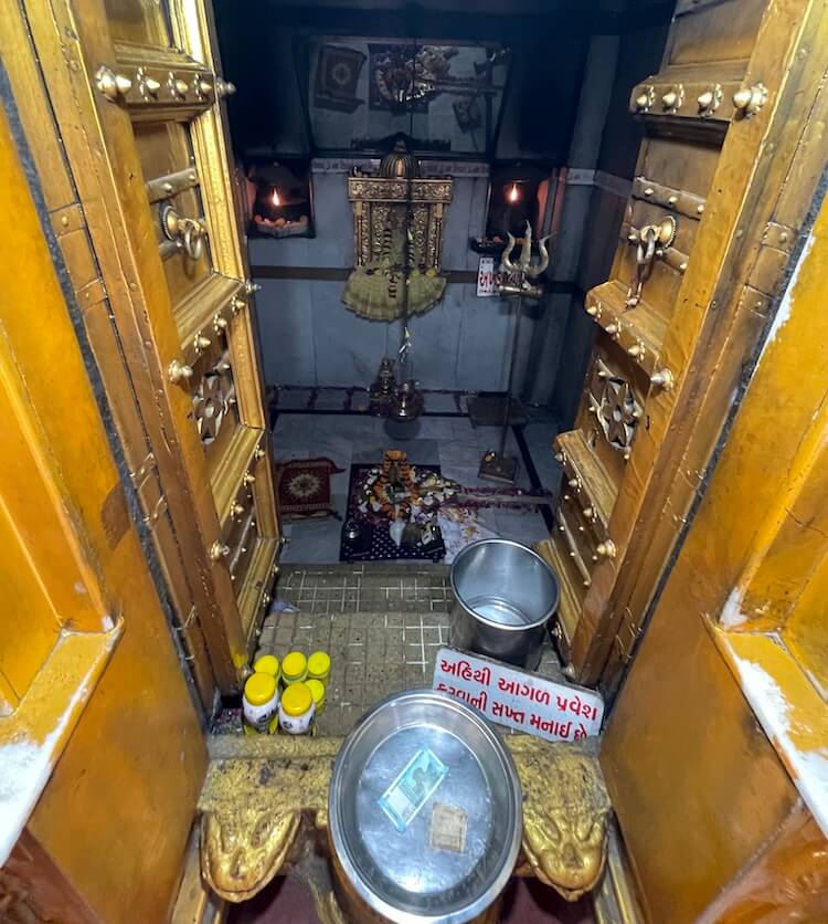 ay of Shravan Vadya Dwadashi (the twelfth day of the waning moon in the month of Shravan), the flame remained miraculously extinguished. Initially enshrined within a modest earthen shrine, the Shivling (aniconic representation of Shiva) and the idol of Bhagwan Mahadev were consecrated with due Vedic rites. In later years, the present spacious temple was constructed through the collective financial contributions of the villagers.