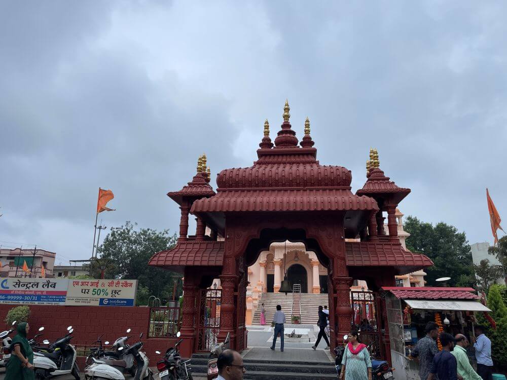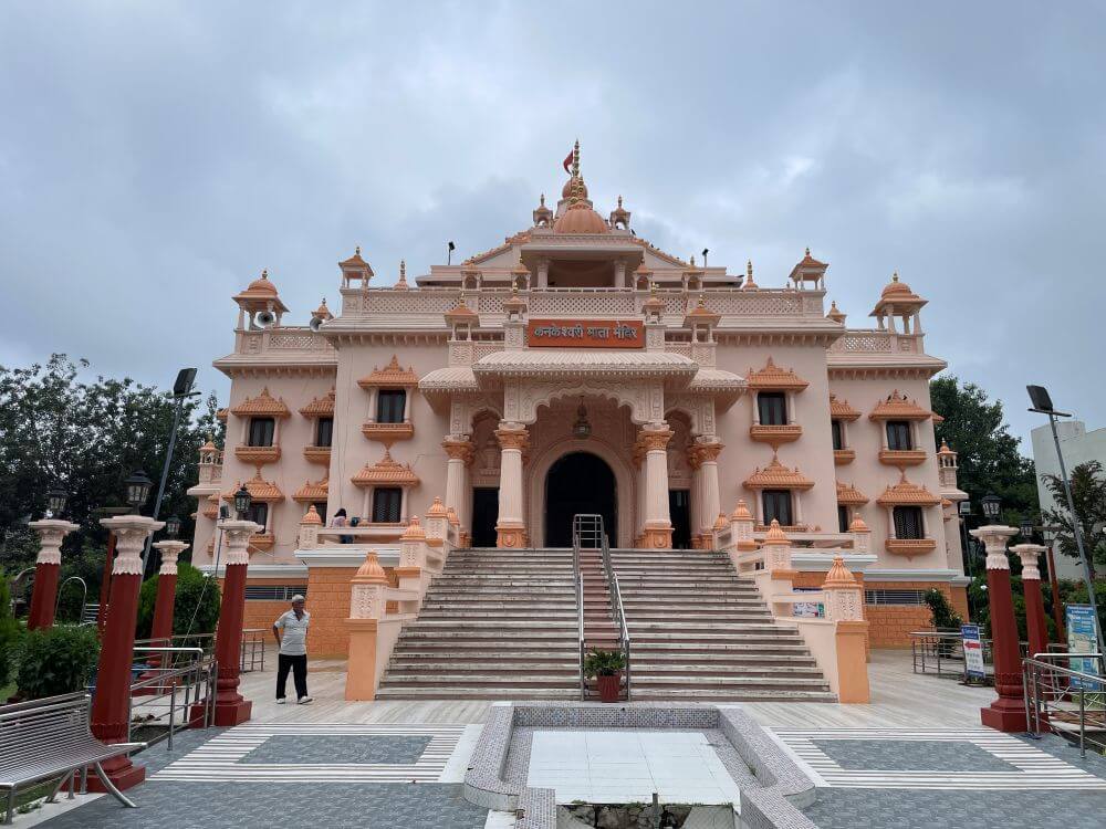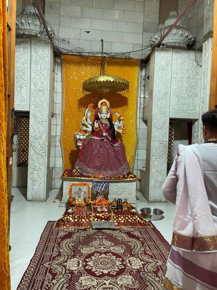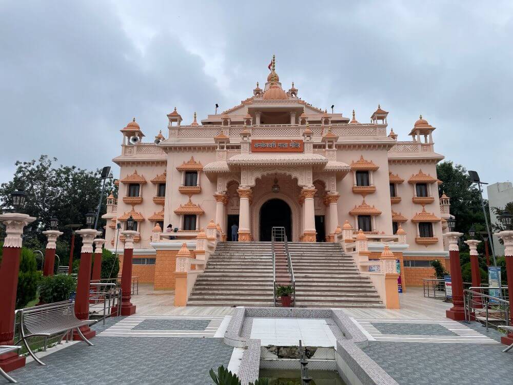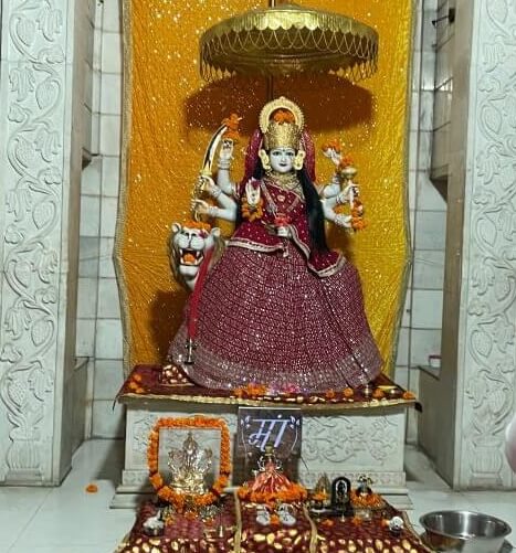 The history of the Indore temple is told thus – devotees of Kanakai living in the city cherished the desire to build here a grand temple to the goddess. Uniting in purpose, they founded the ‘Kanakeshwari Devi Bhakt Mandal’ and began collecting donations from worshippers. Work on the temple commenced in 2002. Special Makrana marble from Rajasthan was brought for the construction and to ensure a beauty comparable to Delhi’s Akshardham. Master craftsmen skilled in temple architecture were invited from Rajasthan. The work of construction continued for nearly fifteen years and in 2017 the consecration of the goddess’s idol was performed.