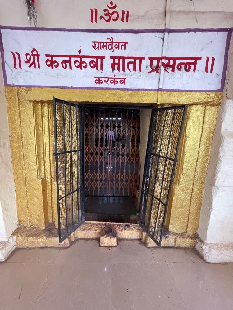 गर्भगृहात वज्रपिठावर कनकंबा देवीची काळ्या पाषाणातील चतुर्भुज मूर्ती आहे. महिषासुरमर्दिनी रूपात असलेल्या या देवीच्या वरच्या दोन हातात तलवार व अग्निकुंड आहेत. खालील दोन्ही हातातील त्रिशुळाने पायाखाली पडलेल्या असुरावर वार केलेला आहे. देवीच्या डोक्यावर मुकुट, विविध वस्त्रे व अलंकार कोरलेले आहेत. मूर्तीस चांदीचा मुखवटा व डोक्यावर चांदीचा मुकुट आहे. गर्भगृहाच्या छतावर तीन थरांचे गोलाकार व वर निमुळते होत गेलेले शिखर आहे. शिखरात दोन पद्मदलमंडल व स्तंभनक्षी आहेत. शिखराच्या शीर्षभागी आमलक, त्यावर कळस व ध्वजपताका आहे.