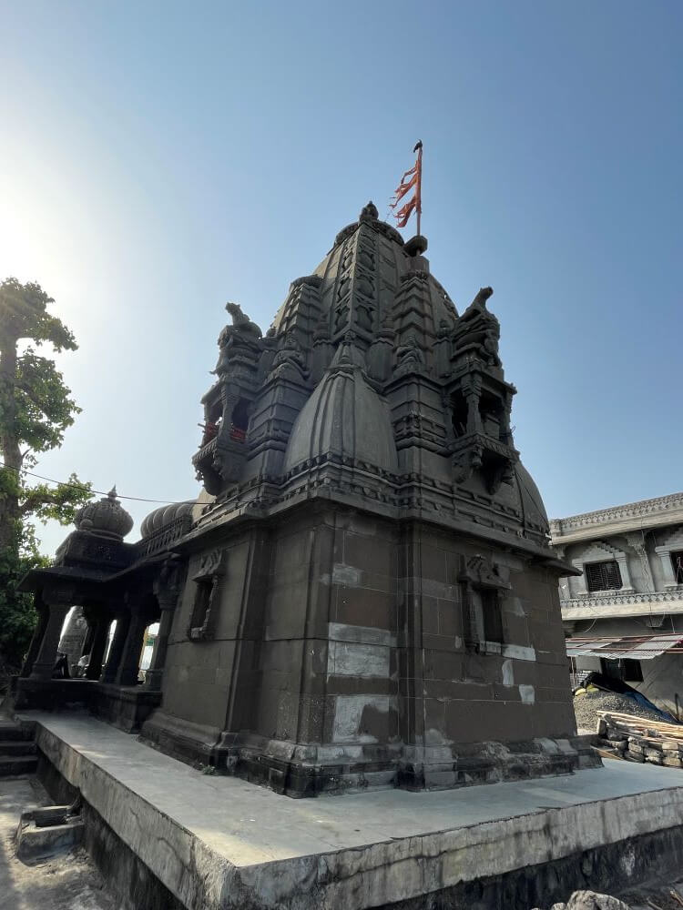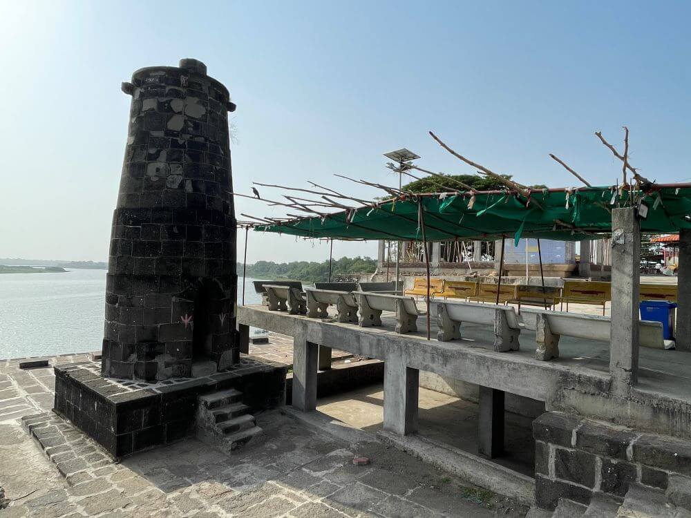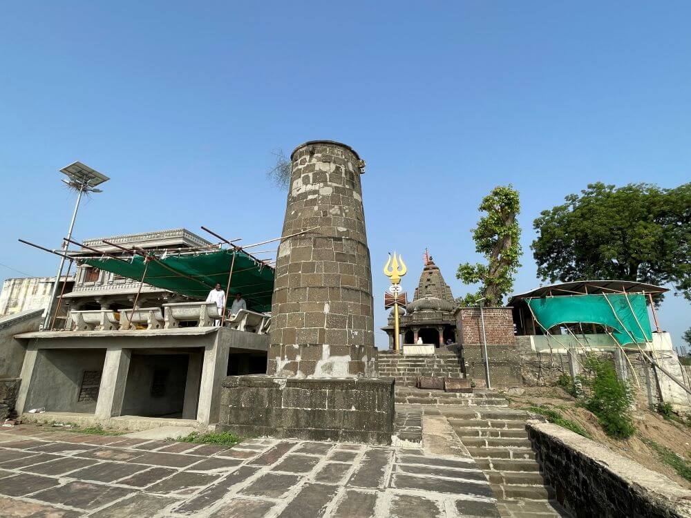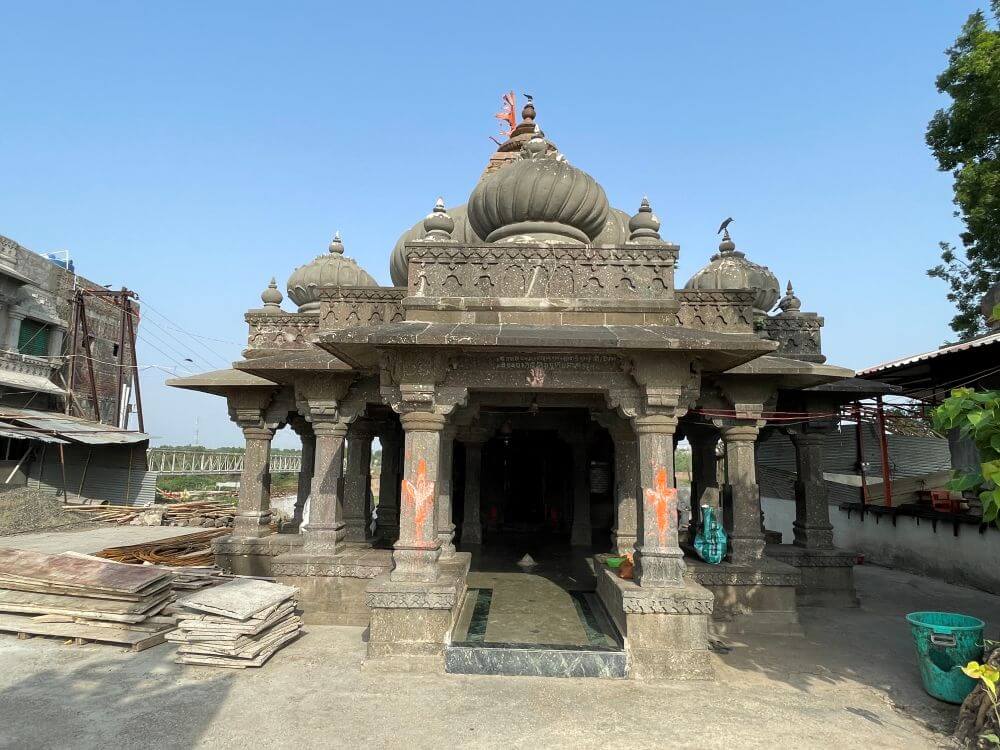 मराठा स्थापत्यशैलीत बांधण्यात आलेल्या या मंदिरासमोर प्रांगणात चार पायऱ्या असलेला चौथरा व त्यावर घडीव काळ्या पाषाणात बांधलेली गोलाकार दीपमाळ आहे. दीपामाळेत आत जाण्यासाठी द्वार व तेथून वर जाण्यासाठी वर्तुळाकार जीना आहे. दीपमाळेची ही रचना दुर्मिळ व अनोखी आहे. दीपमाळेत वरच्या बाजूस हस्त आहेत. बाजूने तापी नदीच्या घाटावर जाण्यासाठी सुमारे ५० दगडी पायऱ्या आहेत. पायऱ्यांच्या दोन्ही बाजूस सुरक्षा कठडे व खाली दोन्ही बाजूस दगडी बुरूज आहेत.